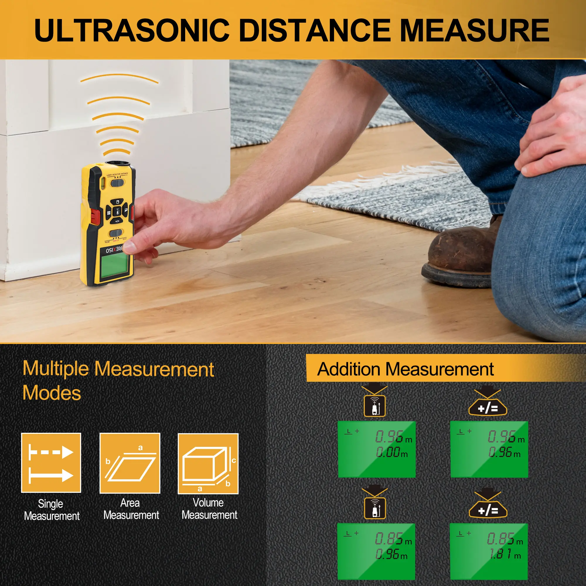 ·Ultrasound distance measure is only for rough measure reference, not as accurate as laser distance measure