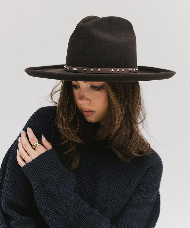 The Studded Leather Hat Band brings a bold, modern edge to your favorite Gigi Pip hat. Inspired by classic Western style and updated with silver-plated metal studs, this band adds instant attitude while still maintaining versatility. Sized specifically to fit our hats, it sits flush against the crown for a clean, elevated finish—whether you're styling felt or straw. It’s an easy way to customize your brim with a little extra flair, whether you’re keeping things subtle or making a full statement. Want to take it further? Layer it with other bands in different textures and widths to create a look that's all your own. Trim your brim your way—there are no rules.