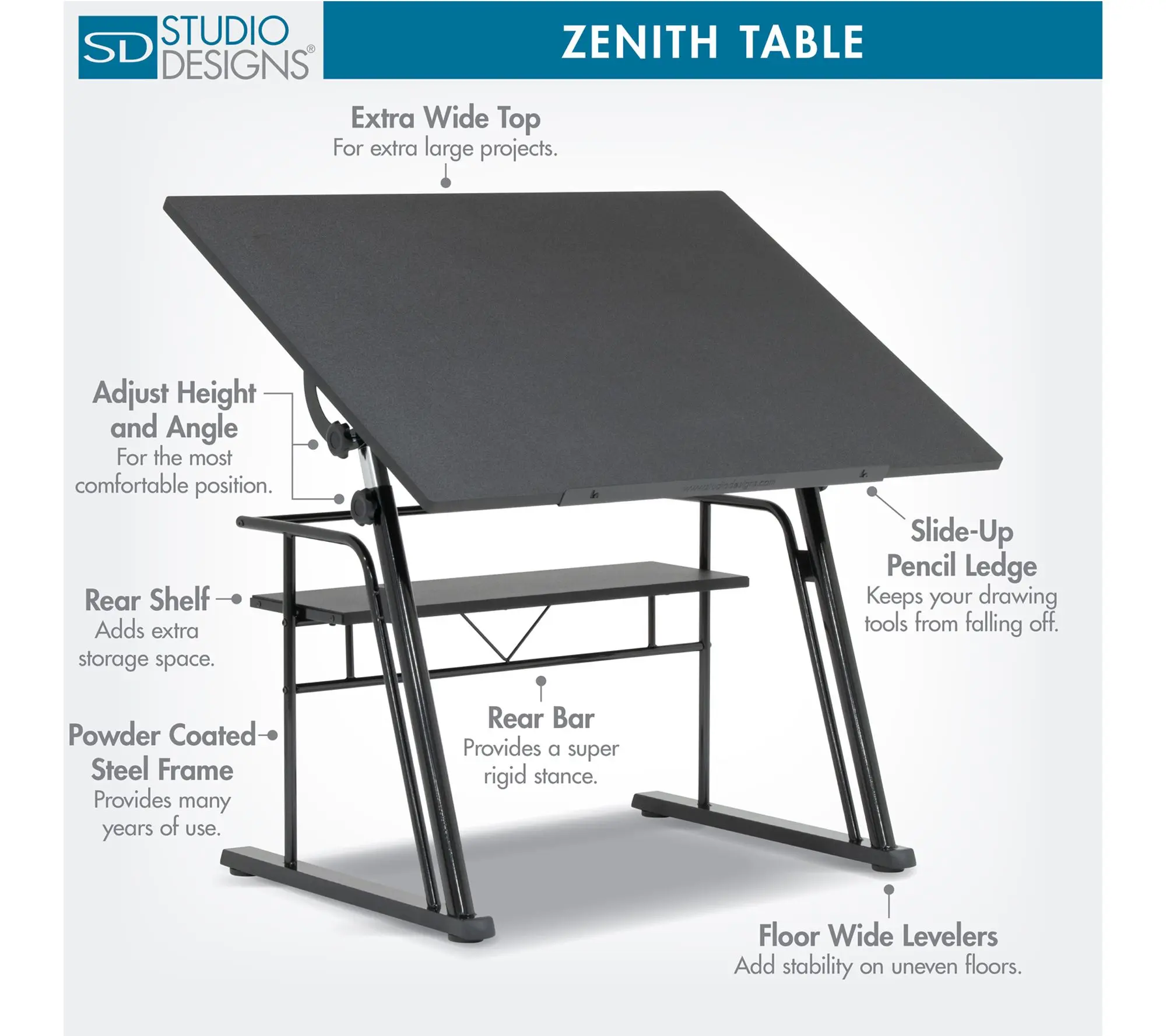 Studio Designs Zenith Adjustable Drawing Tablew/Storage