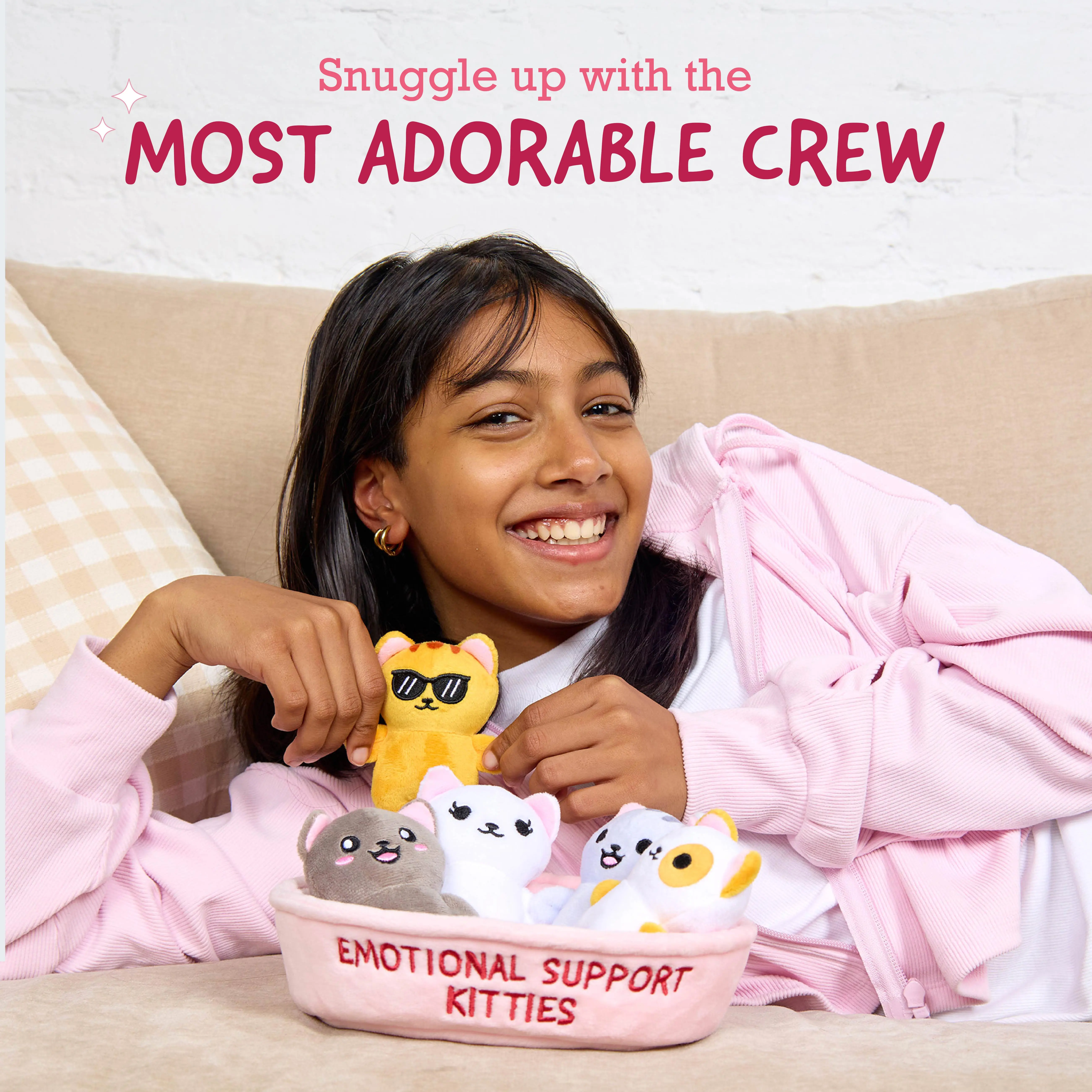 ·Smiling Friends: Includes 1 cozy container and 5 individual plush kitties. Each funny character comes with its own name, personality, and expression. Choose a favorite or take the whole crew with you.