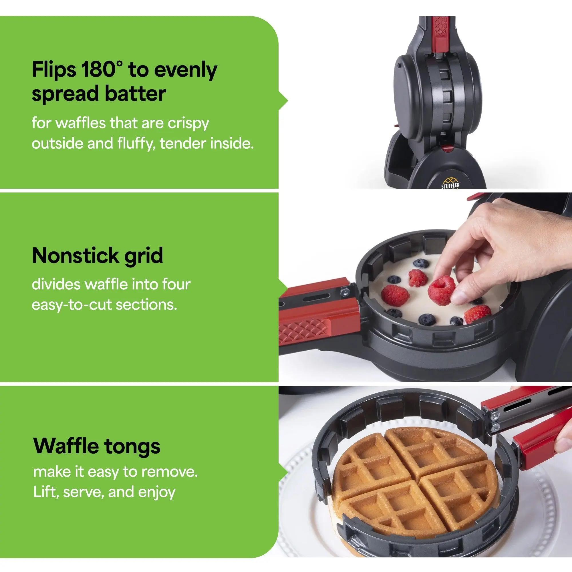 Includes convenient waffle tongs to effortlessly lift, remove, and serve your stuffed waffles