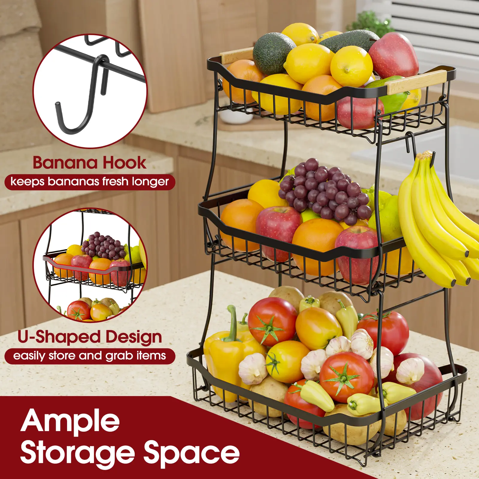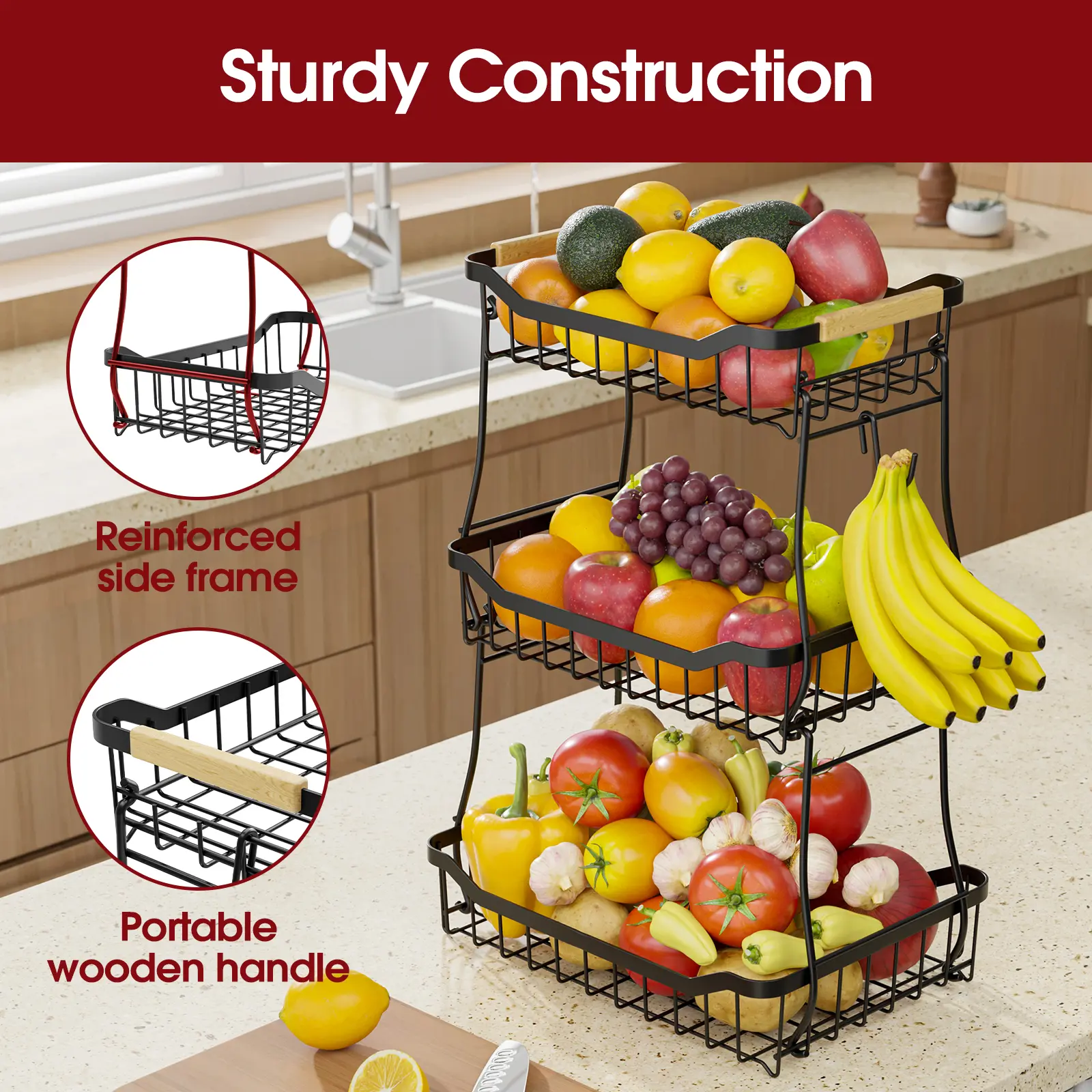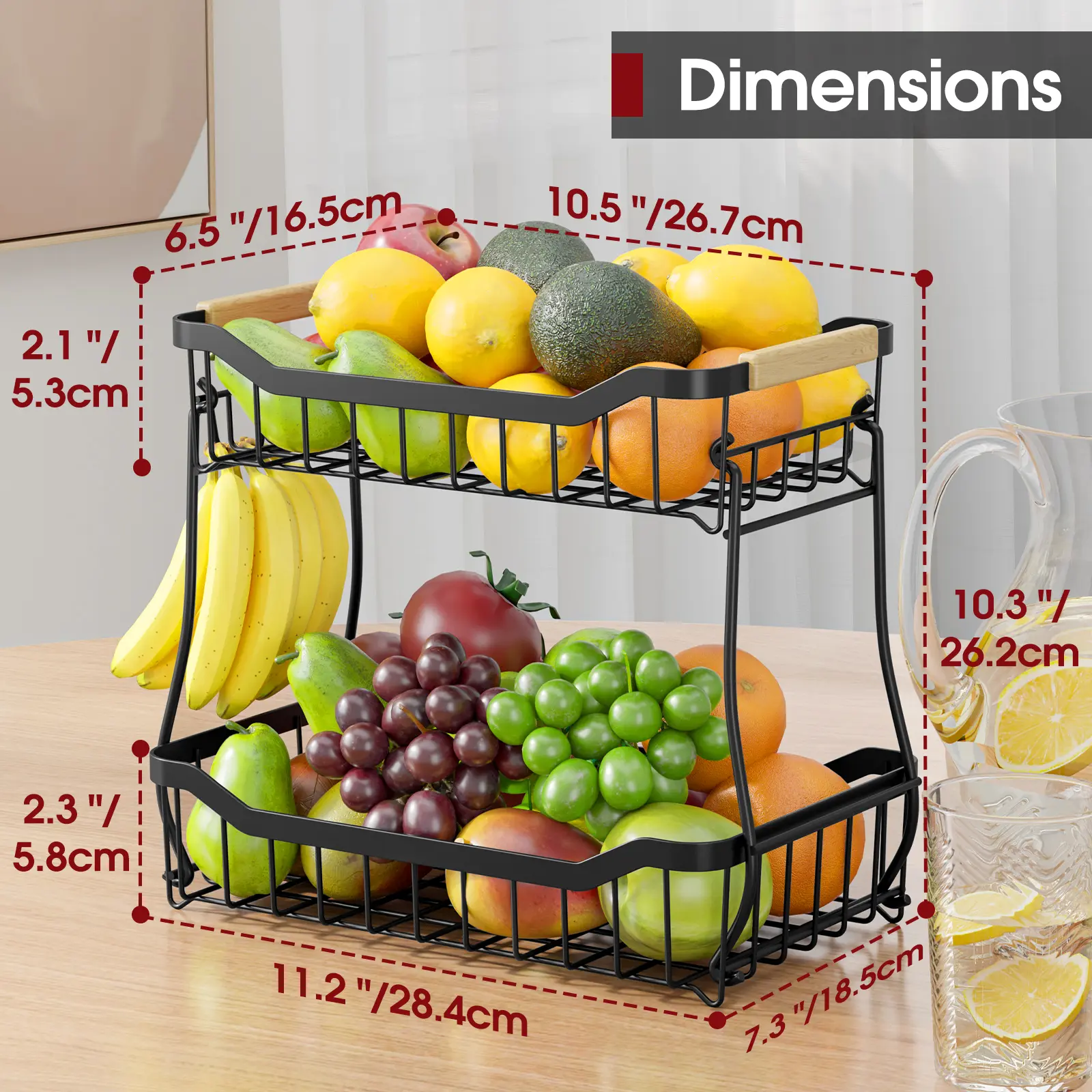 This fruit basket stand is perfect for home use. It offers a practical solution for organizing fruits, snacks, bread, and produce on your kitchen counter. The space-saving design makes it an excellent choice for those looking to maximize counter space.