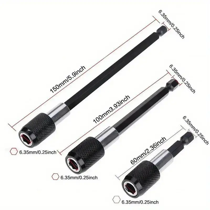 5. 3pcs Sturdy Professional Quick Release Magnetic Drill Bit Extender, Universal Impact Motor Drill Bit Holder, Power Tool Accessories, Drill Bit Extension