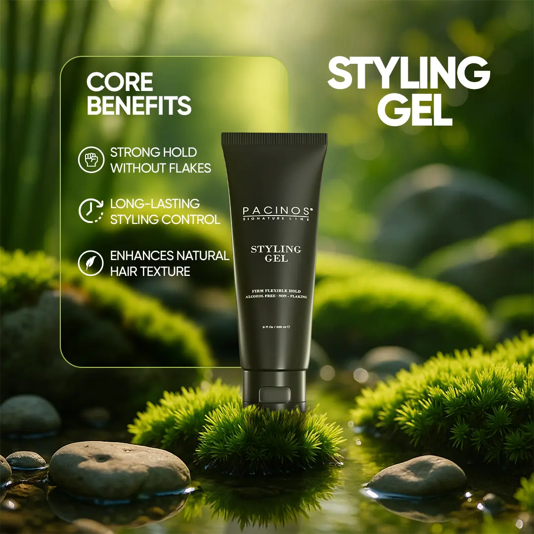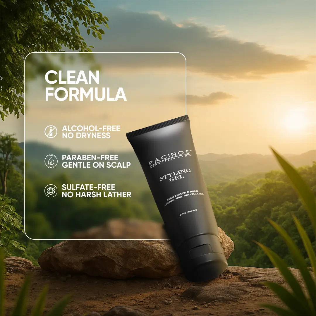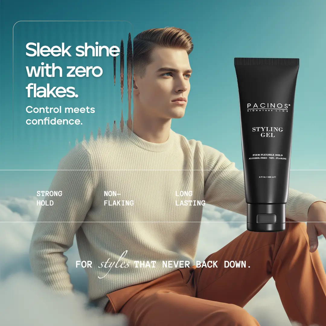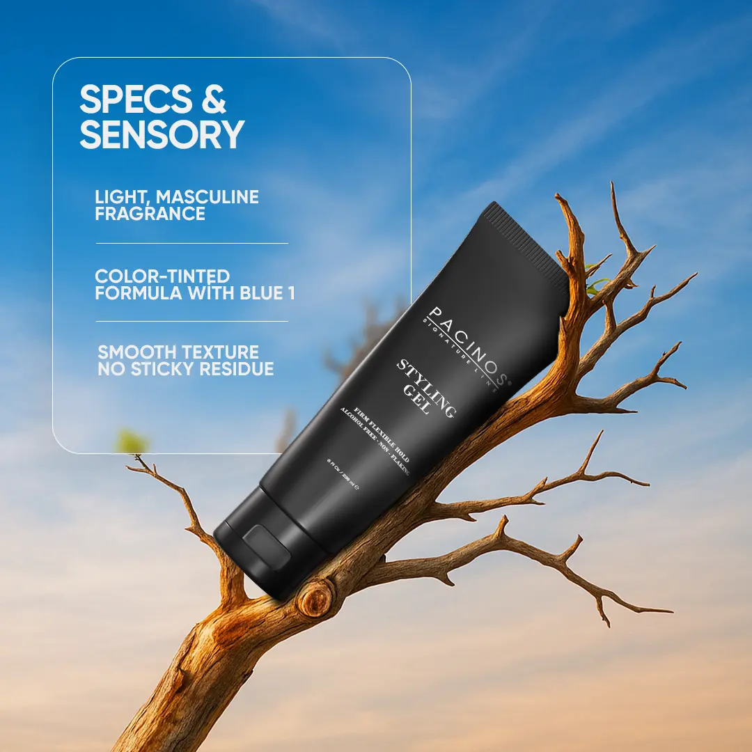 Upgrade your grooming game with Pacinos Styling Gel—designed for performance, powered by hydration.