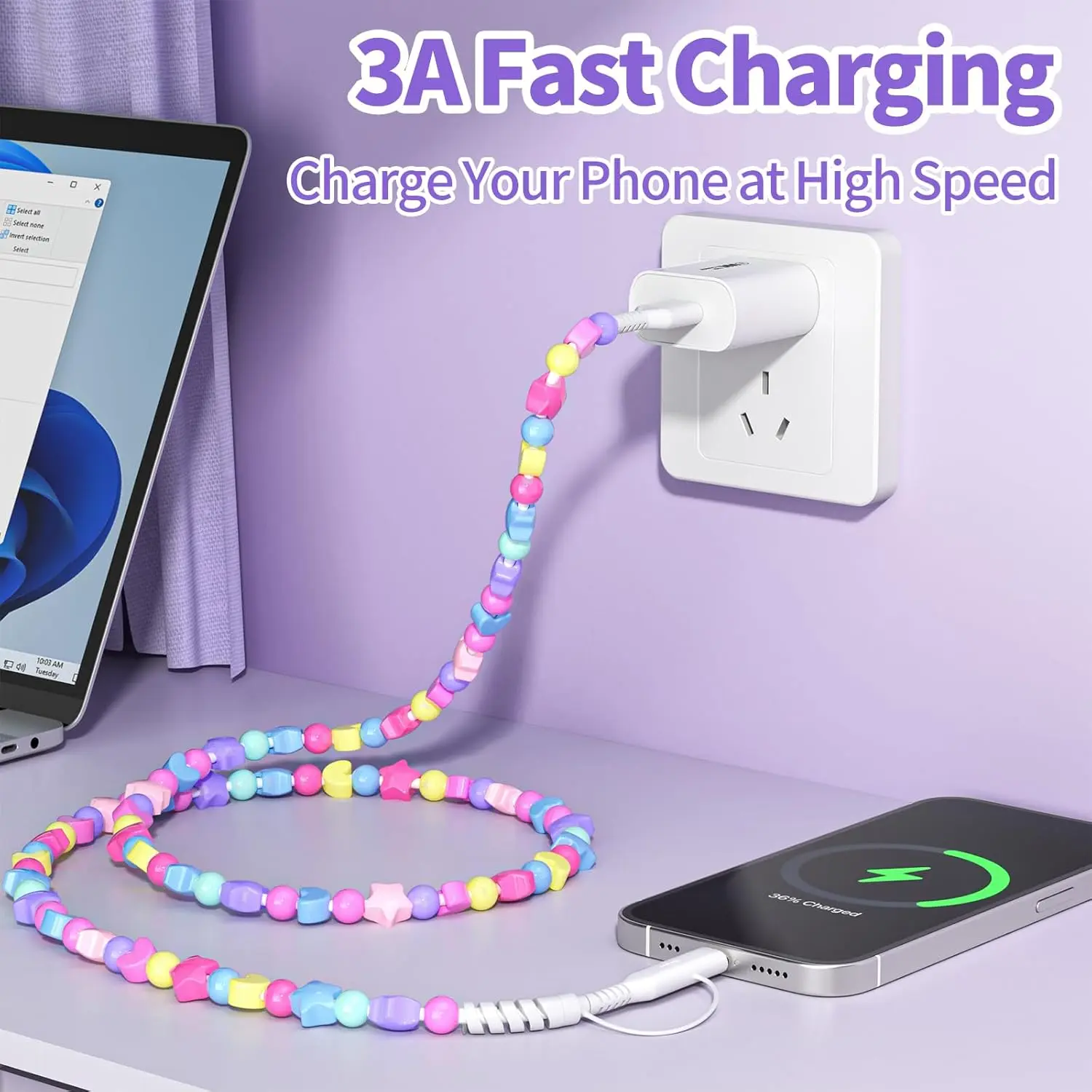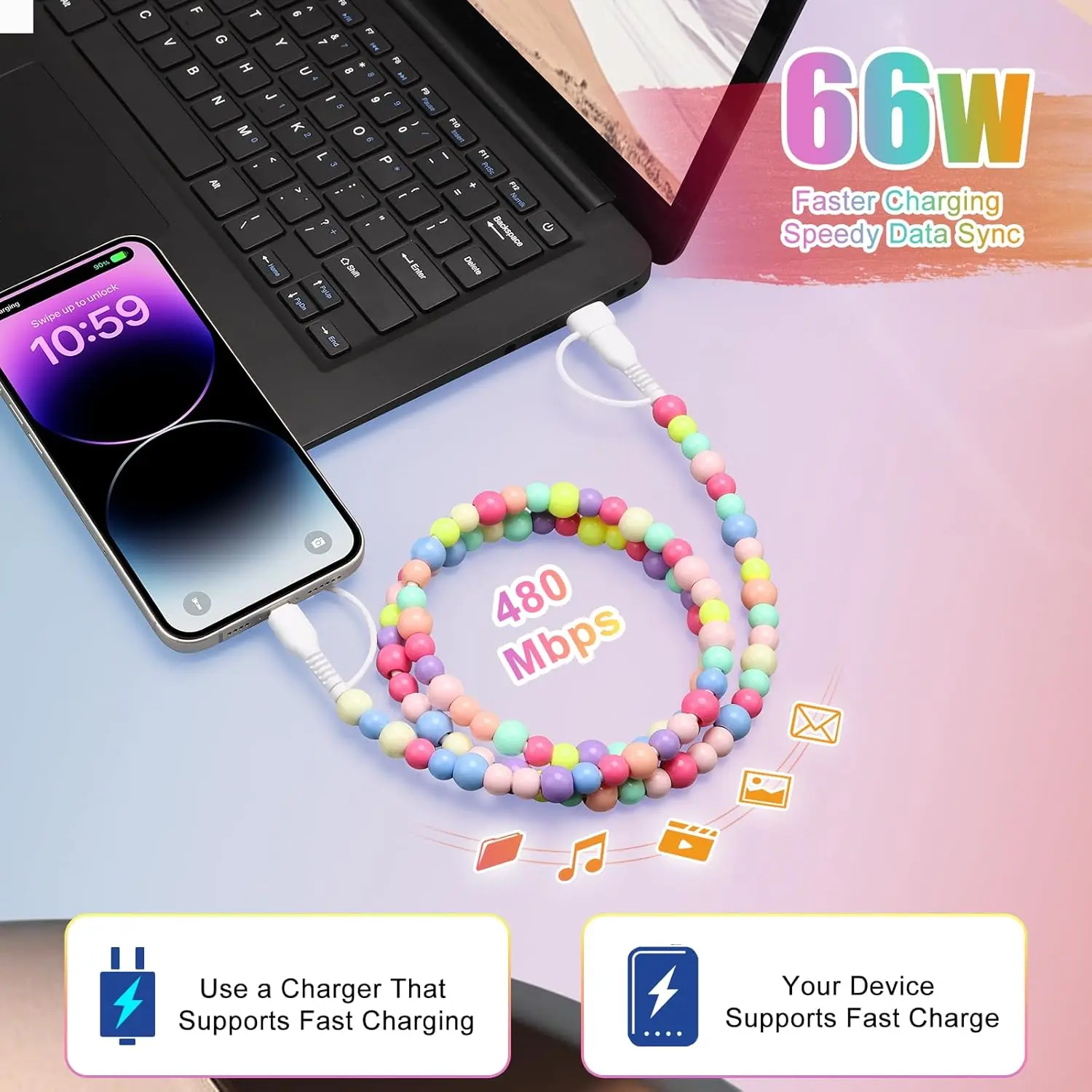 Note: This cable supports fast charging, but to achieve fast charging, the adapter, cable, and charging device all need to support fast charging functionality.