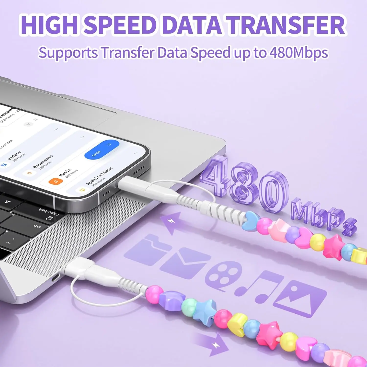 Wide Compatibility: This cable is designed to work with a variety of PD devices, including iPhones, Android devices, and those with Type-C interfaces. It supports fast charging and data transmission speeds up to 480 Mbps, making it a versatile addition to your tech arsenal.