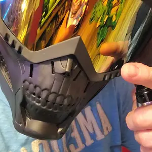 ·skull face mask removable goggles Acrylonitrile Butadiene Styrene (ABS) frame Polycarbonate lens Scratch Resistant Coating coating Sponge Frame,PC lens, Elastic band, adjustable. Enhanced PC Lenses and ABS Frame. Removable skull mask allows goggles to be worn separately High-density comfortable sponge, effective buffer facial pressure
