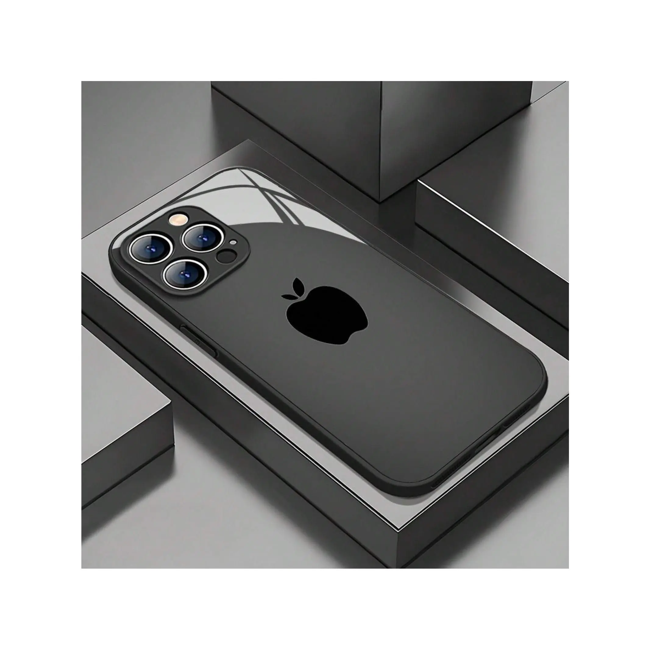 Stylish And Simple Black Apple Pattern Mobile Phone Case For IPhone 16ProMax/15Pro/14Plus/13/12/11/X/XR/XsMax, Fashionable Design, Tempered Glass, Protective Cover With High-End Feel