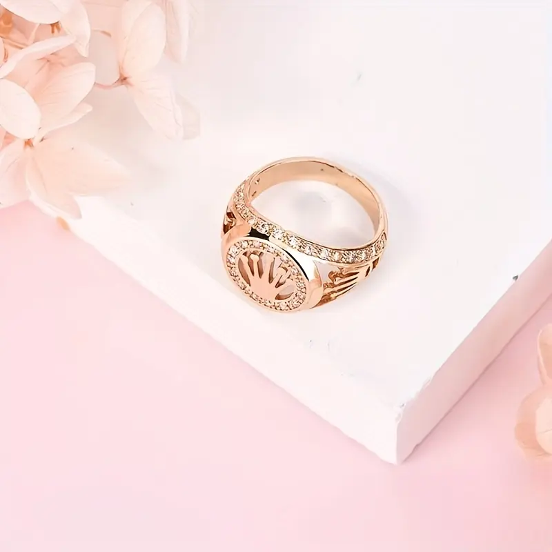 This copper ring features a cool detail crown design, perfect for men's hip hop fashion. It is adorned with cubic zirconia, adding a touch of elegance. Ideal for New Year and Valentine's Day, this ring is a stylish accessory. 🌟