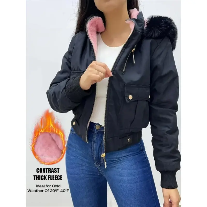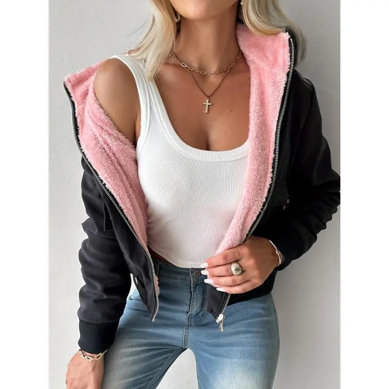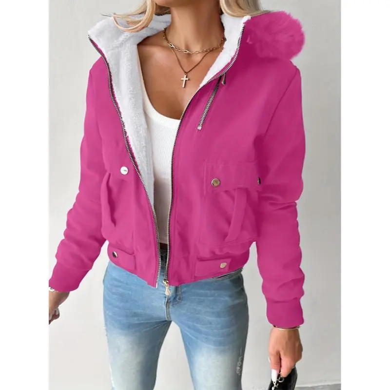 5. Stylish Fuchsia Hooded Jacket With Pockets - Women's Casual Zip Jacket, Machine Washable Fabric Polyester Womenswear CoatsGift