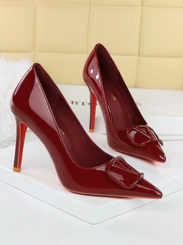 Women's Stiletto Shoes, Elegant Pointed Toe Design in Glossy Patent Leather, V-Buckle Detail, Ideal for Party Wear #kittenheels #trendyshoes #stiletto #trendingshoes #womenheels #fallshoeshopping #bestshoes #highheel #popularshoes #cuteheels