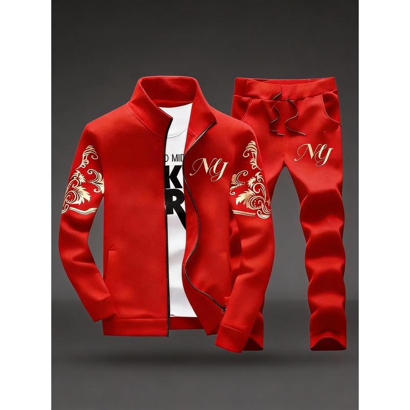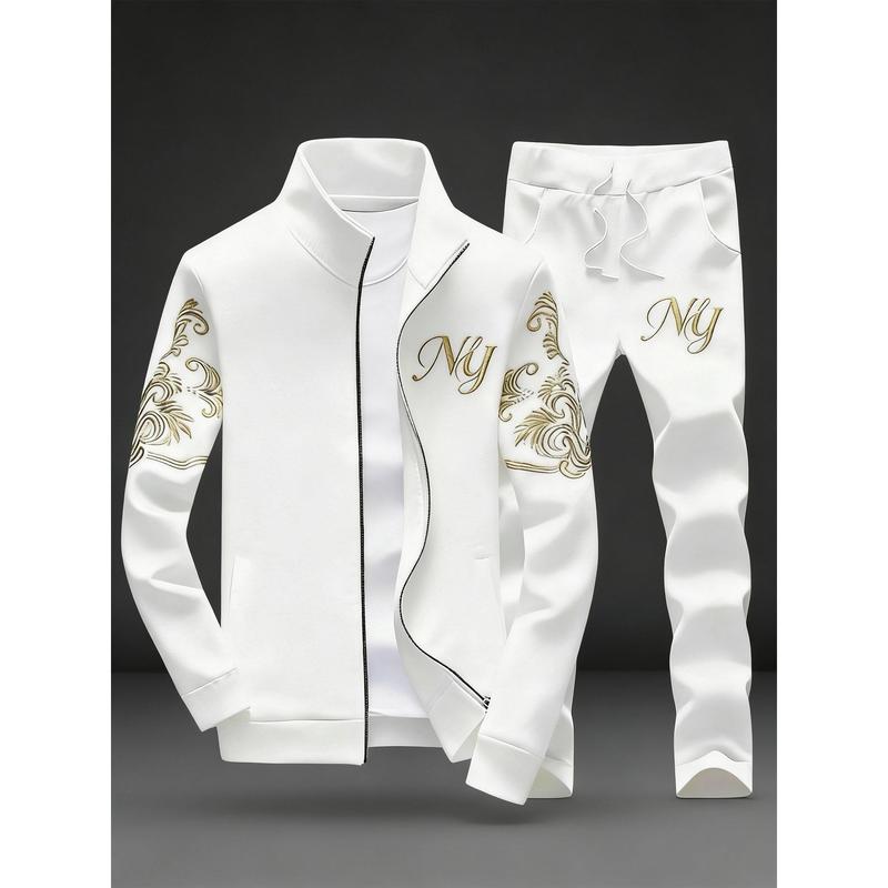 Stylish Men's Embroidery Stand Collar Tracksuit - Full Zip 2-Piece Casual Sportswear for Daily Leisure & Casual Outfits
