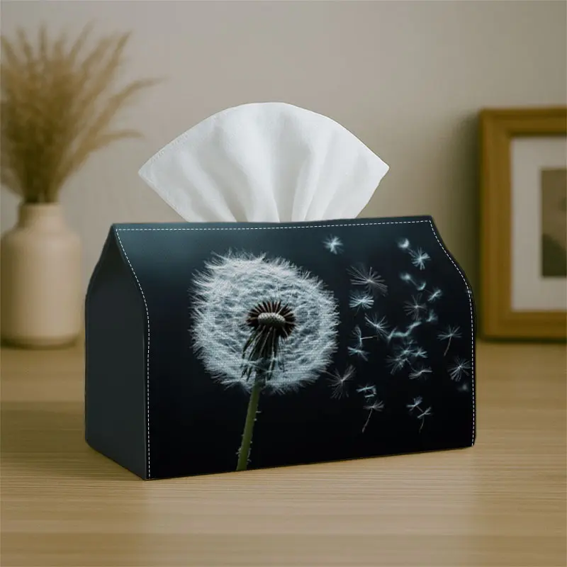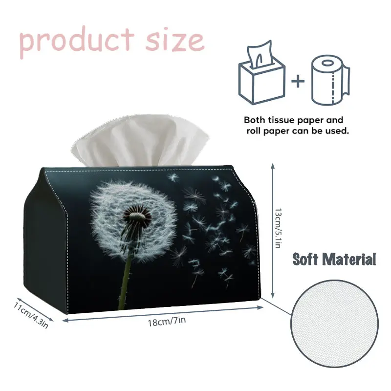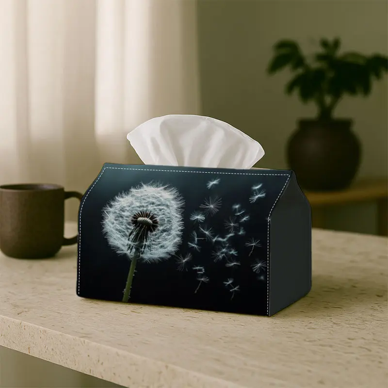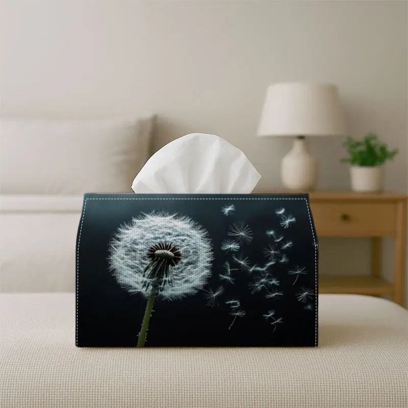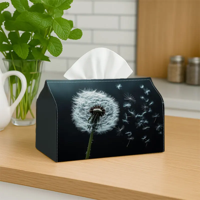 1PC Tissue Box with Checkered Lid - Dandelion Seeds Blowing Design, Durable Fabric Multi-Functional Decorative Storage for Kitchen, Living Room, Tissue Dispenser for Home & Car Decor , Compact & Stylish for Everyday Use, Tissue Holder