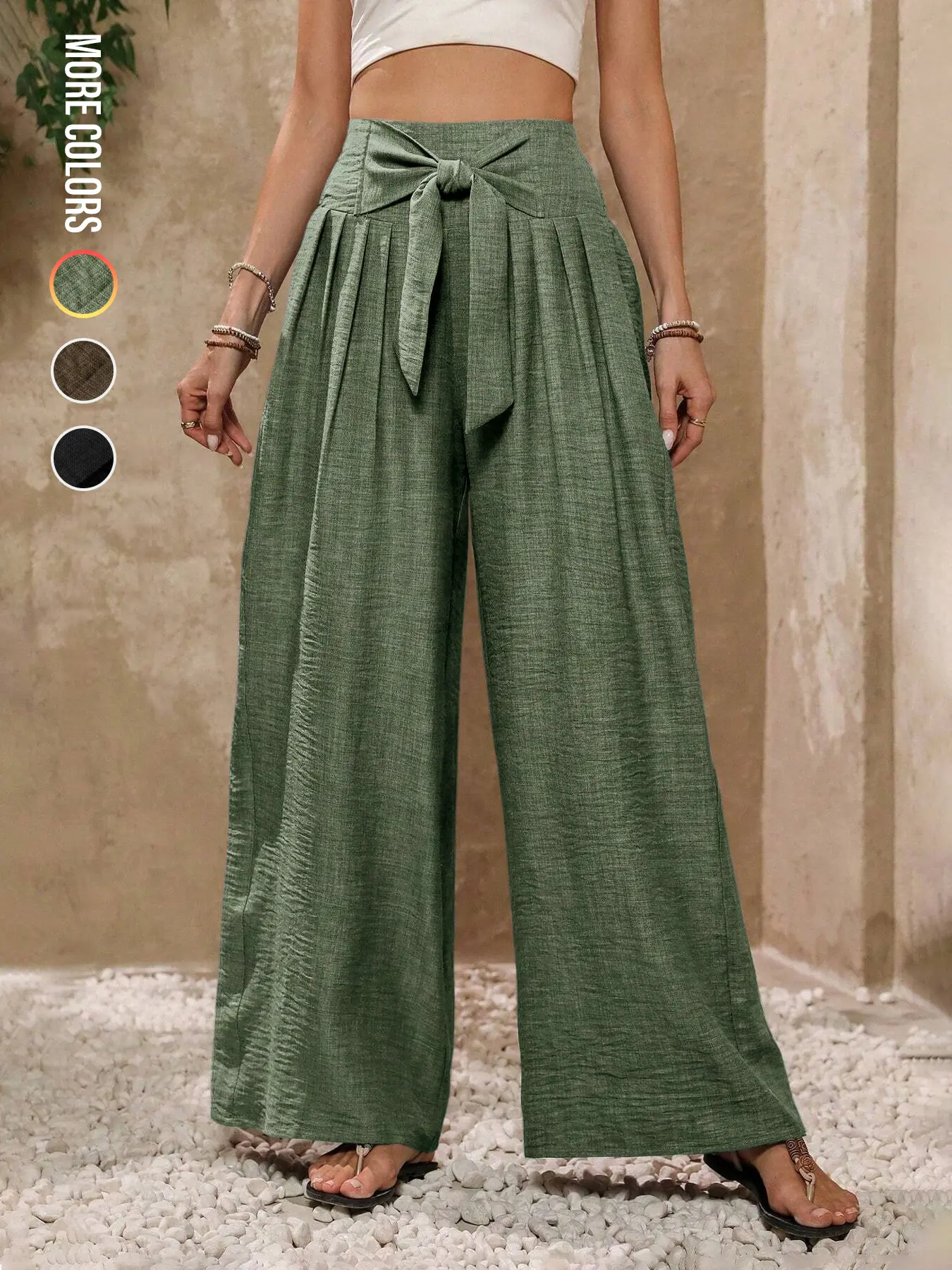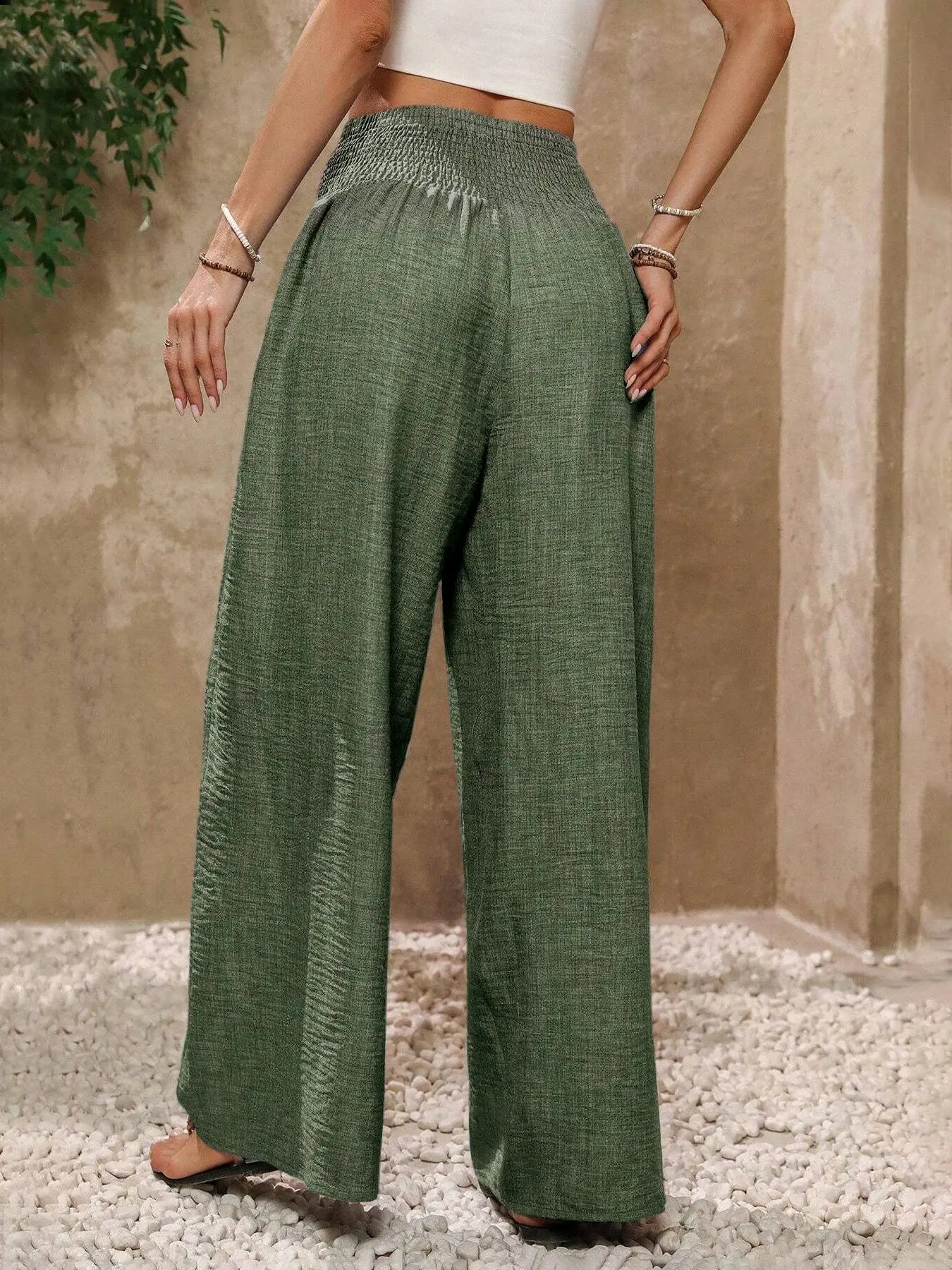 The cutest flowy beachy pants. Love the green color. True to size I’m 5’4 140lbs and got a M. Fits perfectly because it does have to lot of stretch with the elastic wasteband.