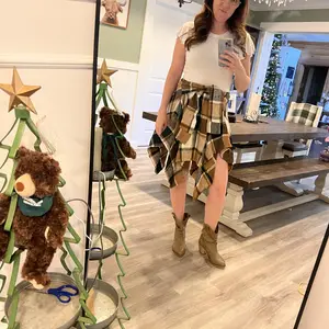 Love this flannel skirt so much! It’s playful and you can pull one side up. Dress it up or down. So happy with this purchase!
