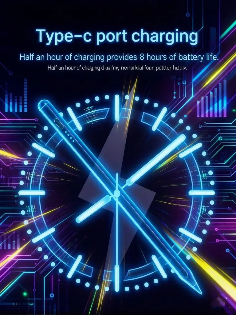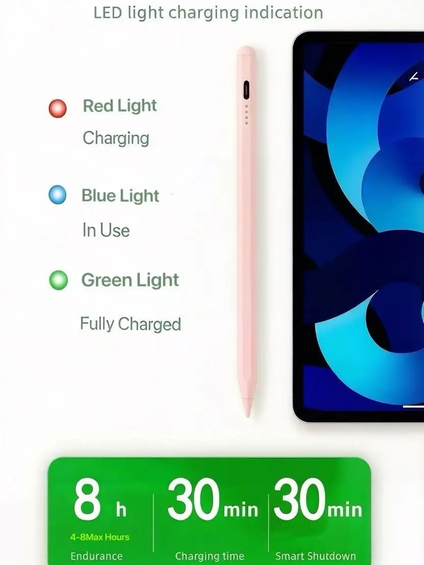 This stylus supports super fast charging and delivers up to 8 hours of continuous use on a full charge. Critical Startup Note: To power on, press and hold the power button for 2–3 seconds until the indicator light illuminates. If the pen fails to start, please fully charge it first (a depleted battery can prevent startup). We recommend using a 5V/2A charger for stable power delivery to avoid activation issues.