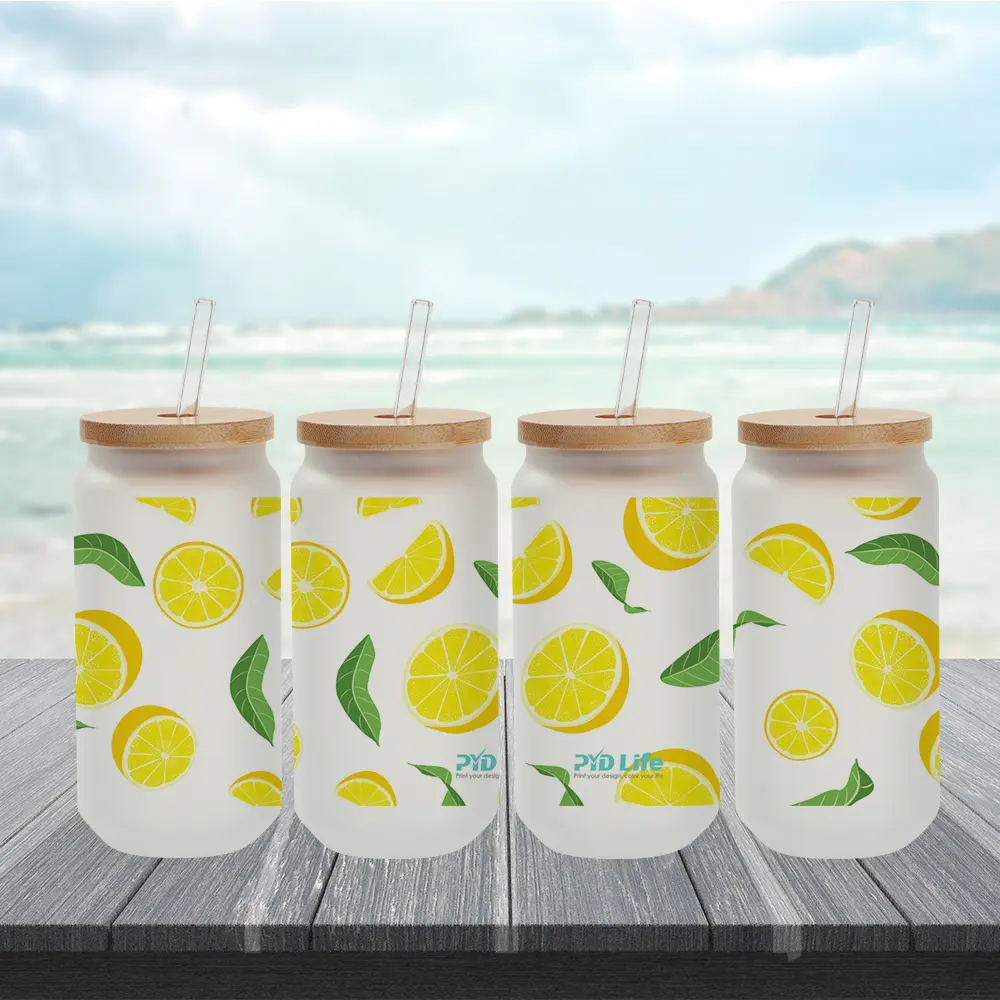 ·With Lid and Straw:Our sublimation can glass with bamboo lid and clear glass straw,it's convenient for drinking.