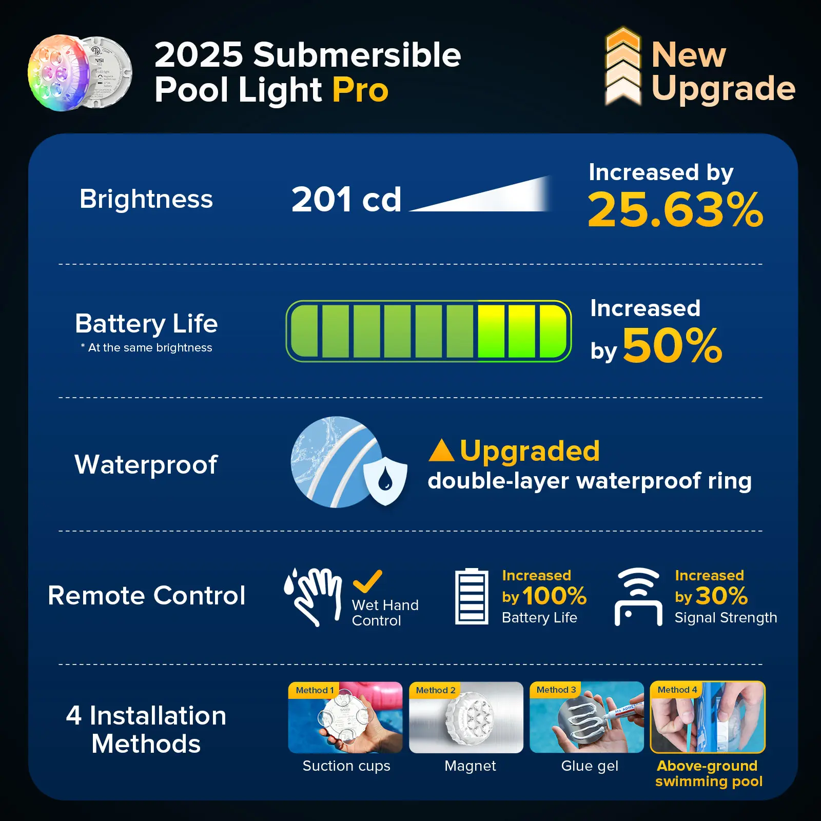 Introducing the SANSI 8-Pack Submersible LED Pool Lights, designed to enhance your pool experience with their innovative features and high-quality components.