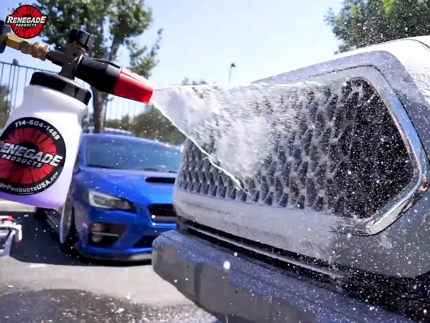 Add 2–3 oz. of Sud Storm into a Renegade Foam Cannon, Foam Gun, or bucket. Pre-soak the surface to loosen dirt and grime.
