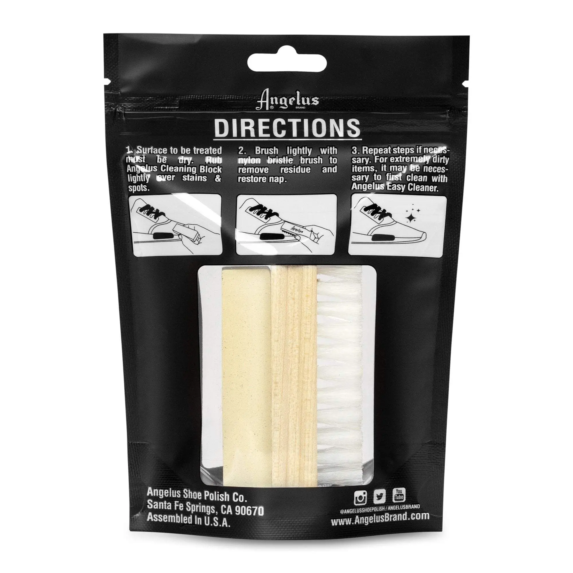 Angelus Suede & Nubuck Cleaner Kit - 1 Cleaning Eraser Block and 1 Nylon Bristle Brush - Eliminates Stains, Removes Spots, Restores Nap - UGG Cleaner for Leather Suede Shoe, Handbags, Jackets, Boots, Furniture, Cleaner For Uggs