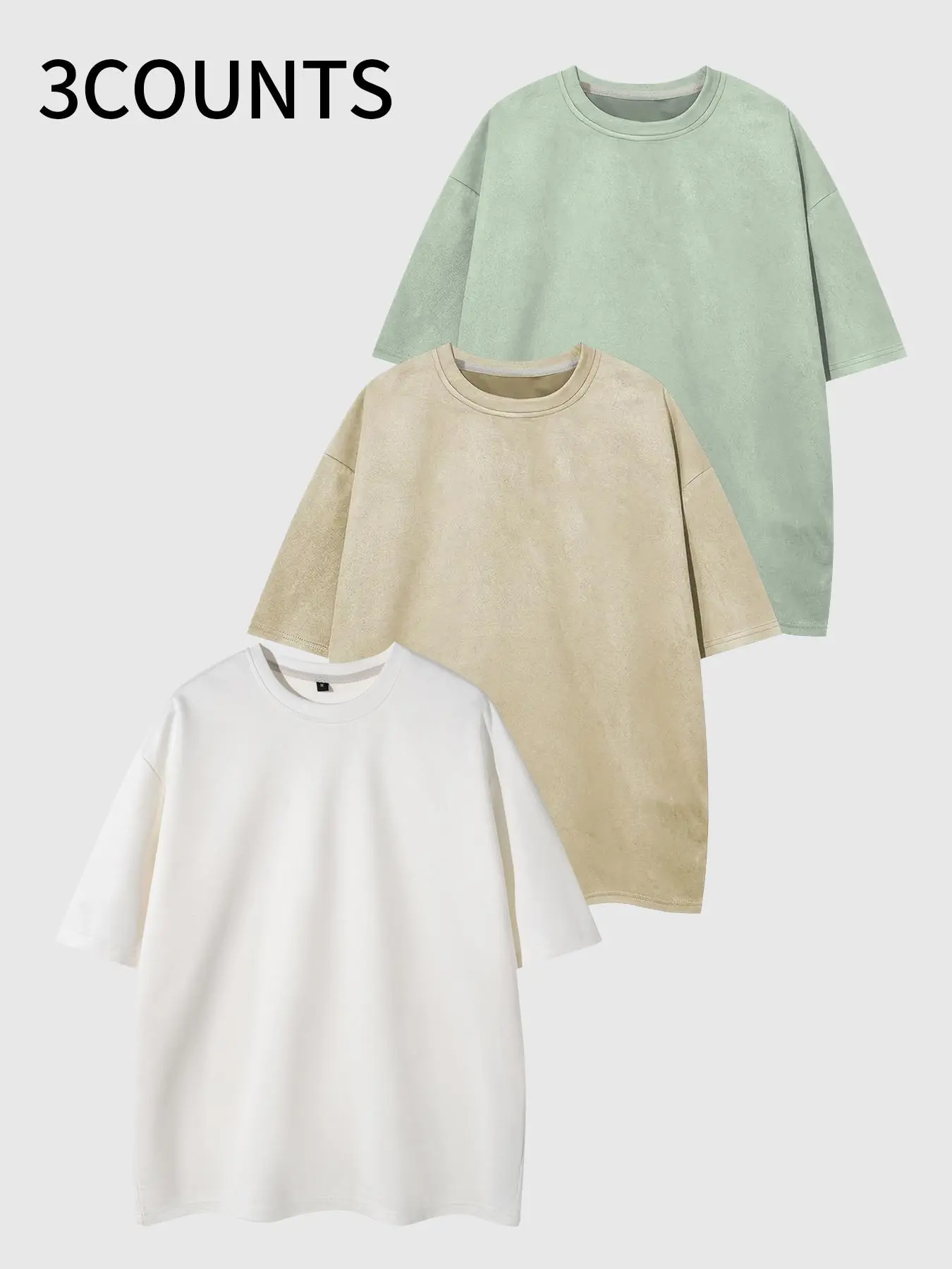 5. Men's Solid Color Drop Shoulder Suede Tee, Regular Fit Casual Street Style Short Sleeve Round Neck T-shirt for Summer, Men's Top for Daily Wear, Streetwear