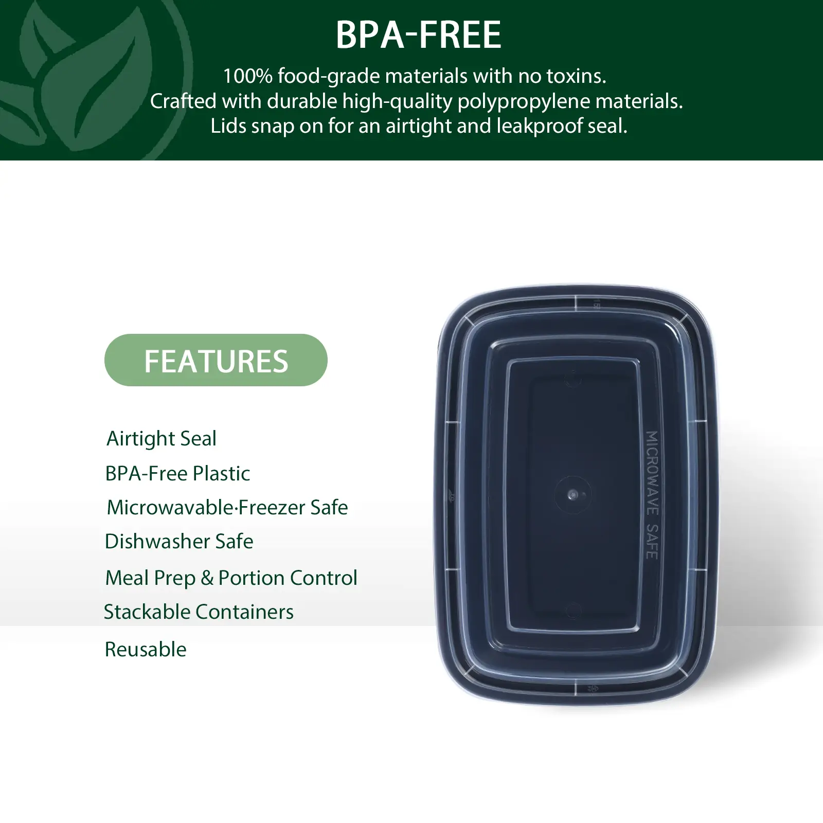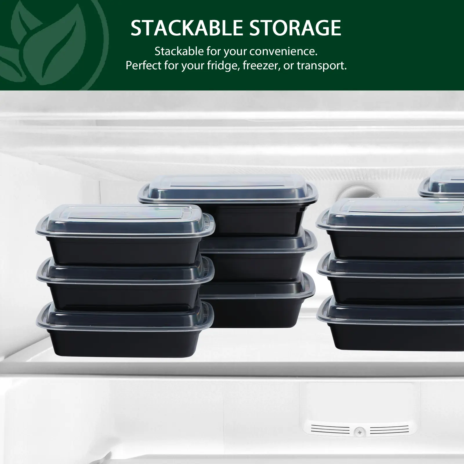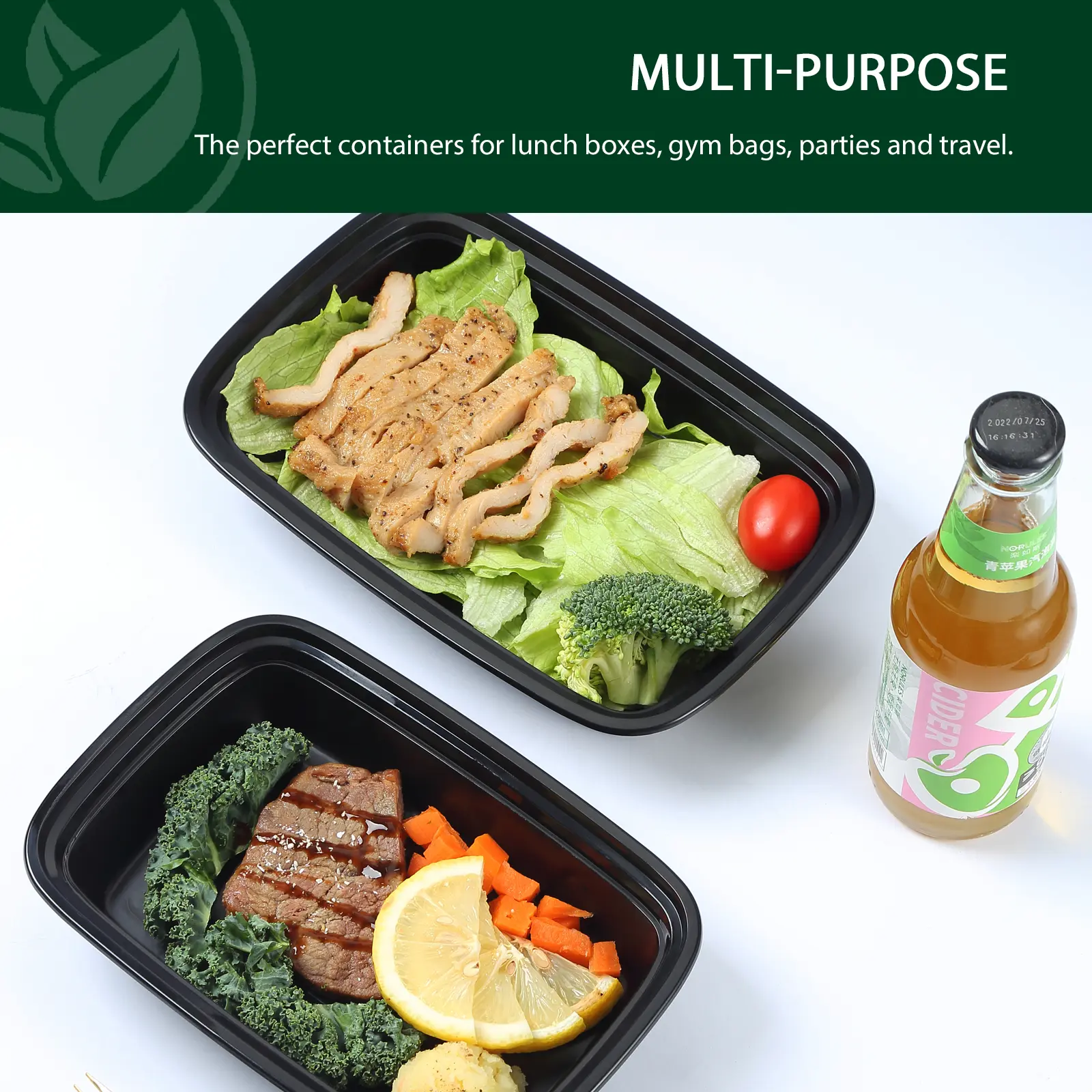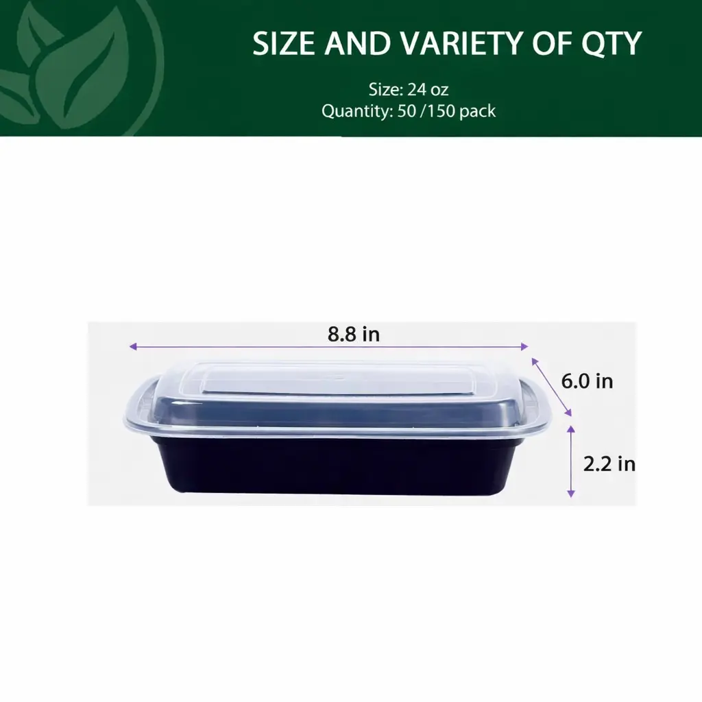 Upgrade your meal prep with these 24oz Rectangle Black Meal Prep Containers! Packaged in sets of 50 or 150, these containers are perfect for parties, catering, and daily use. Their sleek black design fits any setting. Reusable and stackable, they offer convenience without sacrificing style. Microwave safe for easy heating, these plates are a versatile kitchen addition.