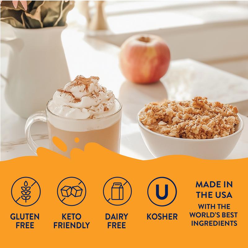 This crisp, cozy blend of baked apple, cinnamon, and brown sugar delivers all the comfort of fall desserts—without the sugar. Stir it into cider, drizzle it on oats, or shake it into smoothies.