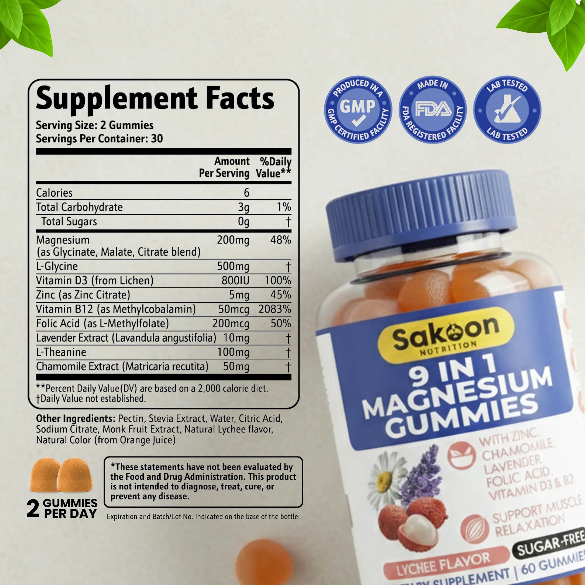 ·𝐌𝐚𝐝𝐞 𝐢𝐧 𝐅𝐃𝐀-𝐑𝐞𝐠𝐢𝐬𝐭𝐞𝐫𝐞𝐝 𝐅𝐚𝐜𝐢𝐥𝐢𝐭𝐲: Manufactured in a GMP-certified, FDA-registered facility and third-party lab tested for purity, potency, and consistency. One bottle provides 60 magnesium gummies for convenient daily support you can rely on.