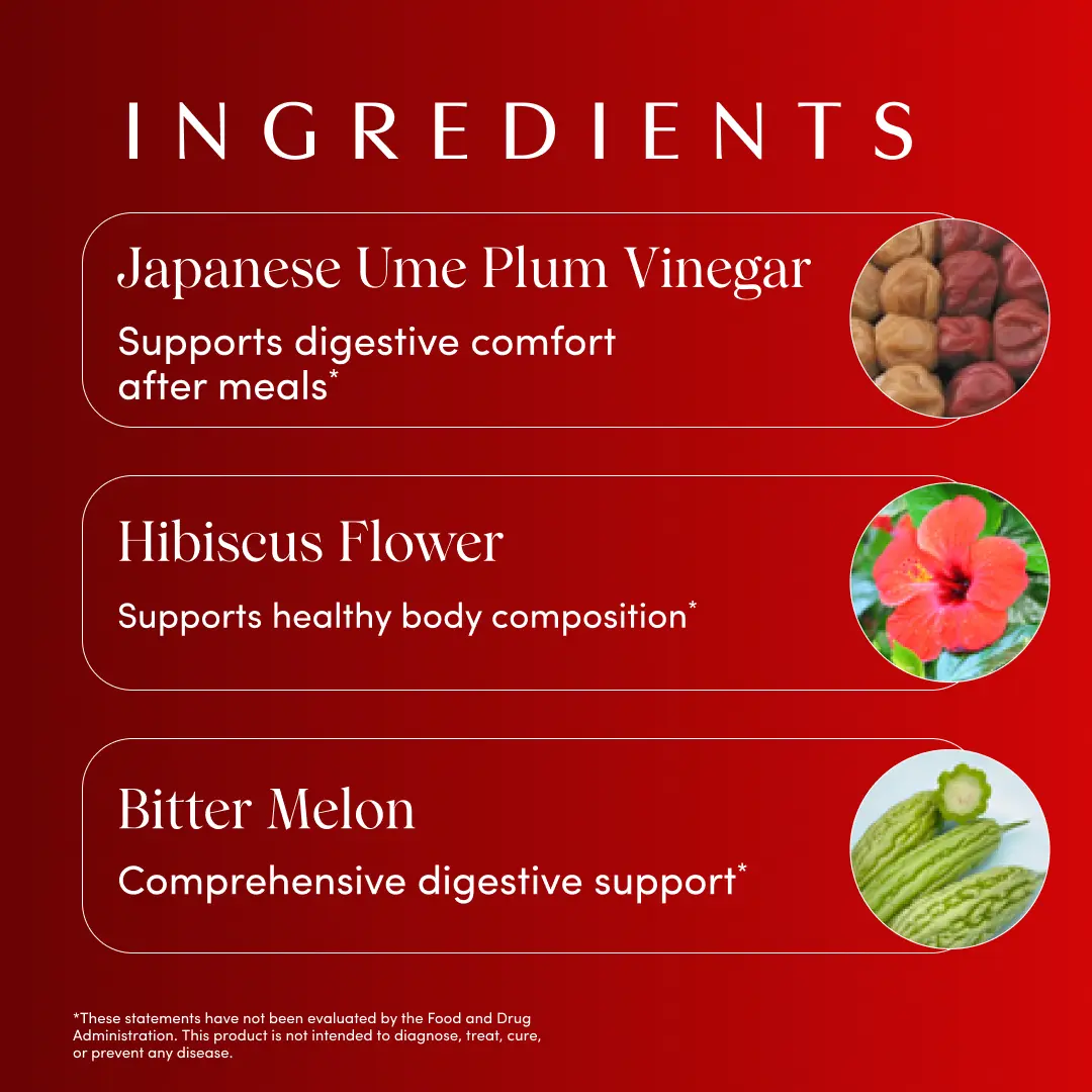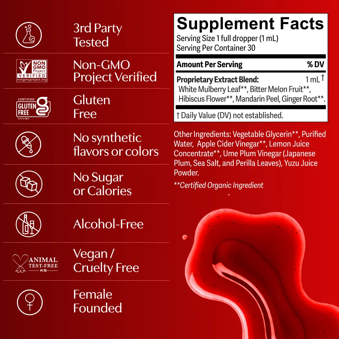 Proprietary Extract Blend: White Mulberry Leaf**, Bitter Melon Fruit**, Hibiscus Flower**, Mandarin Peel, Ginger Root**