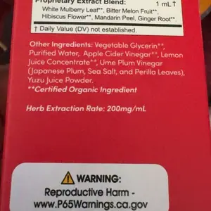 Other Ingredients: Vegetable Glycerin**, Purified Water, Apple Cider Vinegar**, Lemon Juice Concentrate**, Ume Plum Vinegar (Japanese Plum, Sea Salt, and Perilla Leaves), Yuzu Juice Powder.