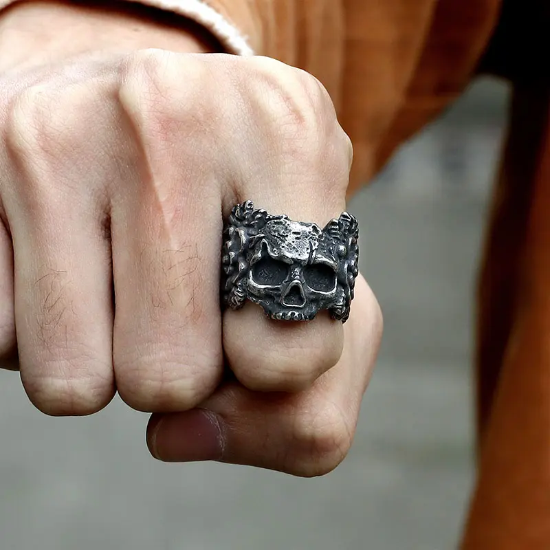 ·This beautiful sugar skull ring makes the perfect addition to any finger, with intricate details making it a truly stunning piece. A symbol created as part of the Mexican festival Dia de Los Muertos, this popular image celebrates the lives of those we have lost. Truly skull rings for men, truly men's stainless steel rings.