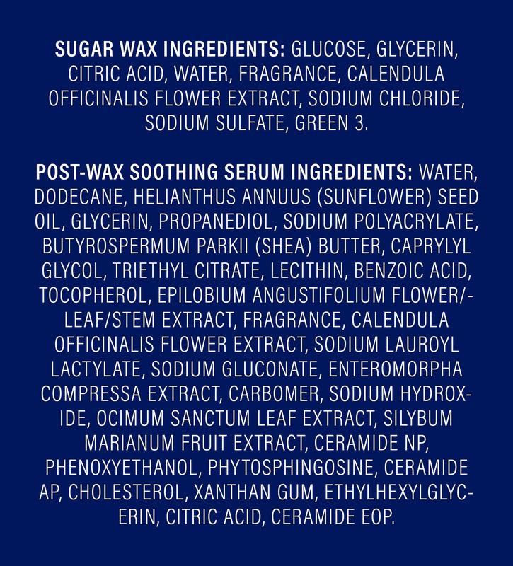 Includes 5.1 oz. Sugar Wax Roller + 10 Reusable Strips + 2 Post-Wax Soothing Serum Sachets.