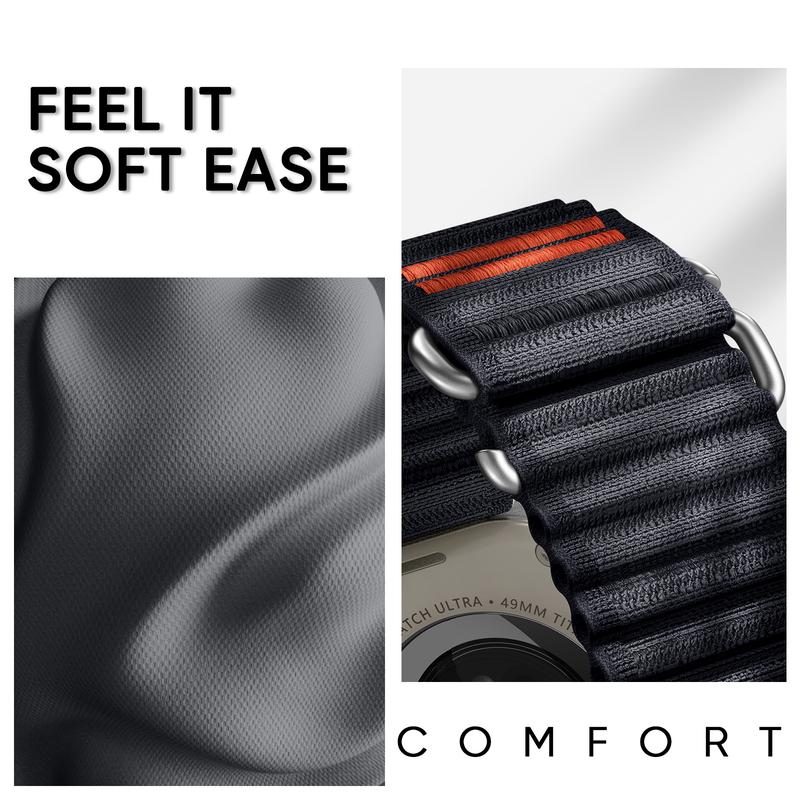 Constructed with layers of resilient nylon fabric and reinforced stitching, this Apple Watch Ultra Band is built to withstand daily wear, sweat, and scratches. The breathable wide ripple design gives an airy touch, making it perfect for workouts and all-day wear.