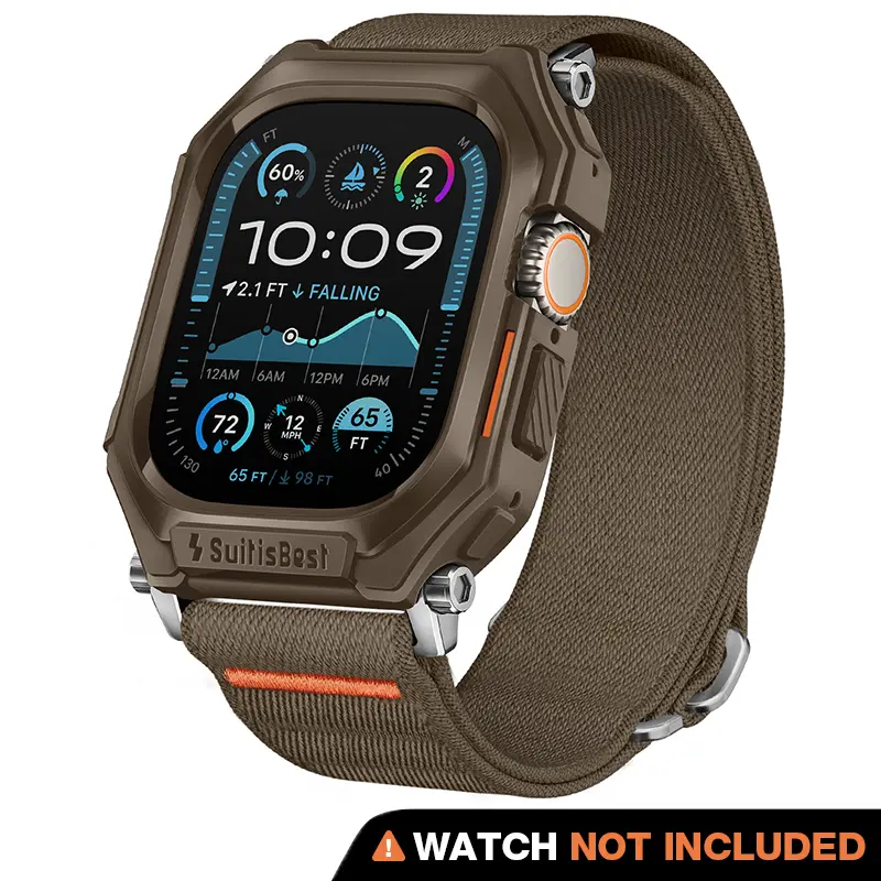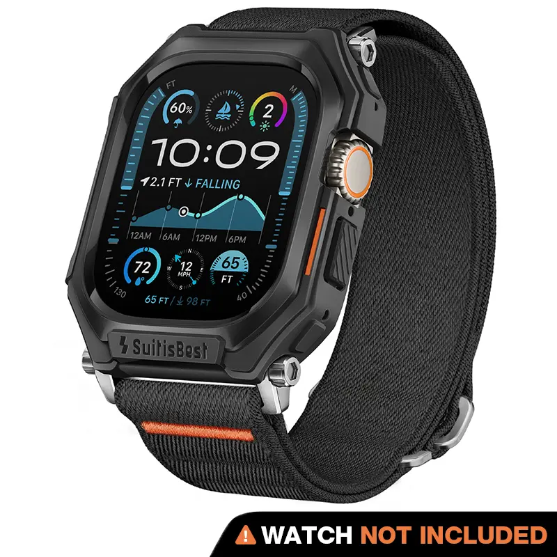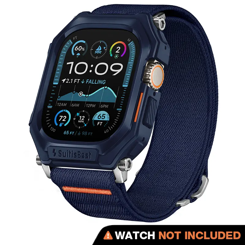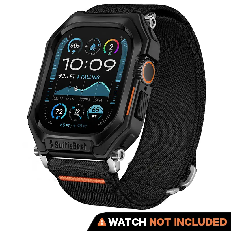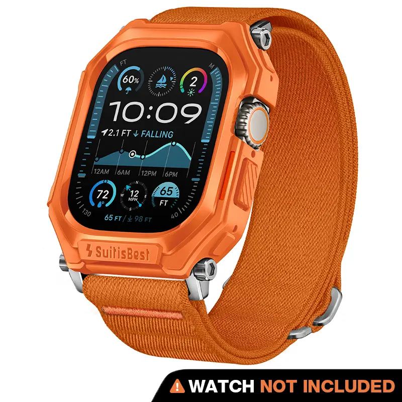 Ever worry about your Apple Watch Ultra getting banged up during your adventures? Meet your new best friend: this rugged case with a stretchy nylon solo loop band. Designed to fit Apple Watch Ultra 49mm, Ultra 2, and Series 9 through SE models in 44mm and 45mm sizes, it’s built tough to protect your watch from drops up to 65 feet and impacts up to 98 feet. The TPU bumper shields every side, while the nylon solo loop stretches to fit wrists from 145mm to 210mm, so you get all-day comfort without the squeeze. Its unibody design means the case and band blend seamlessly, adding protection without bulk. Plus, the ultra-secure S-hook lets you snap on or off your band in a flash, perfect for switching styles or workouts. Whether you’re hitting the trails, the gym, or just going about your day, this combo keeps your watch safe and stylish. Inside the box, you get the rugged TPU case and the stretchy nylon solo loop band—smartwatch not included. Ready to keep your Apple Watch Ultra looking fresh and ready for anything? Grab this rugged case and band and stay active, stay secure!