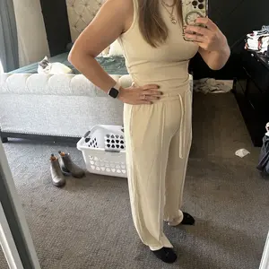 I really love this outfit. It’s super cute. I wear a small but the top was just a tad too tight. I wish you could order a small bottoms and medium top