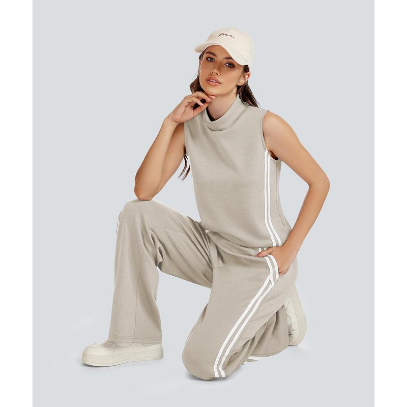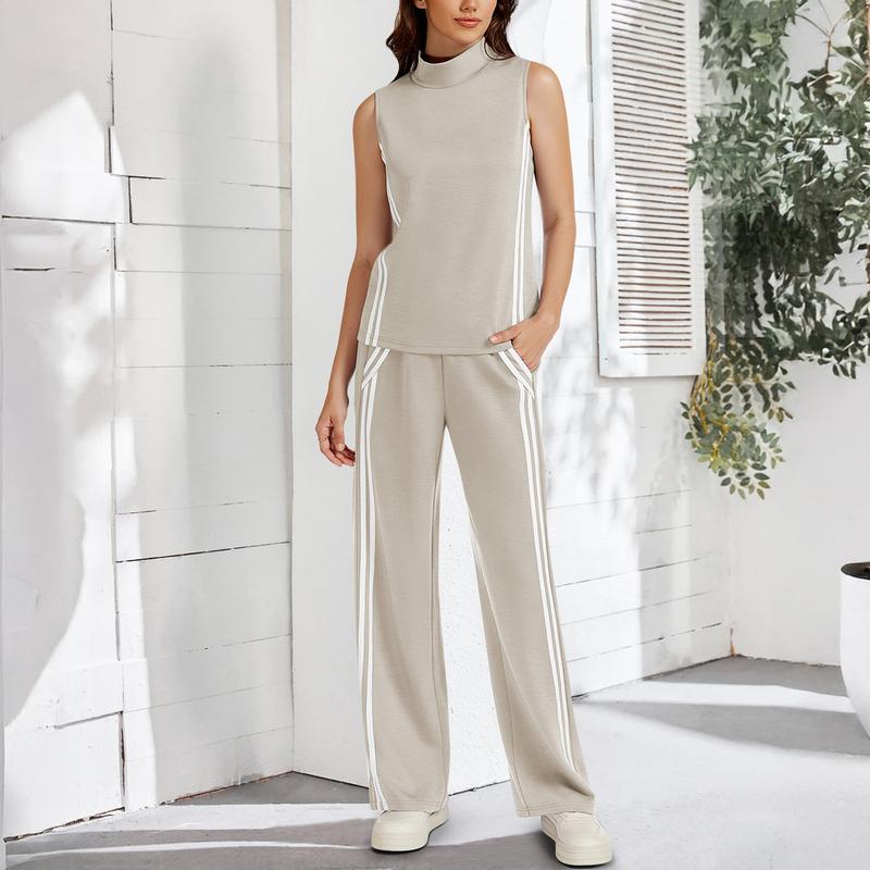 ·Classic mock neck and long trousers.