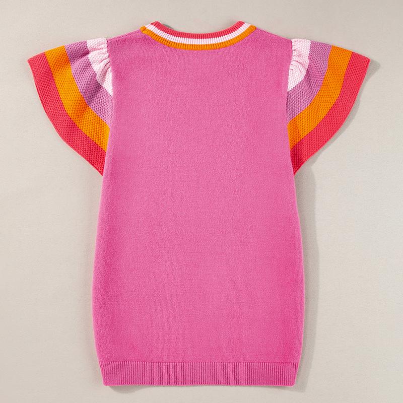 SHEWIN 2025 Fall Women's Color Block Cap Sleeve Soft Knit Pullover