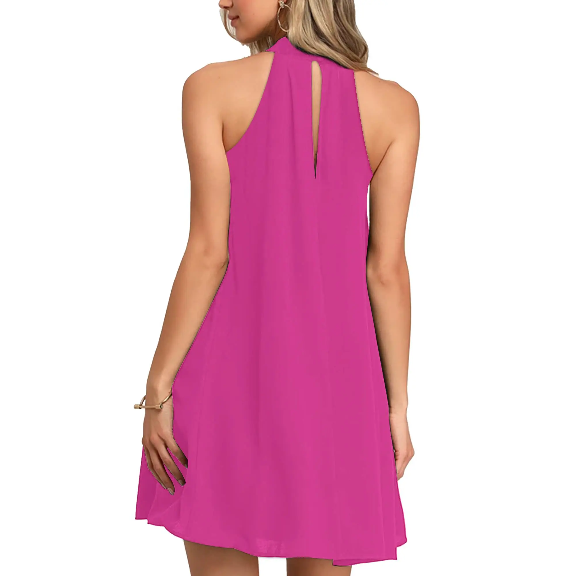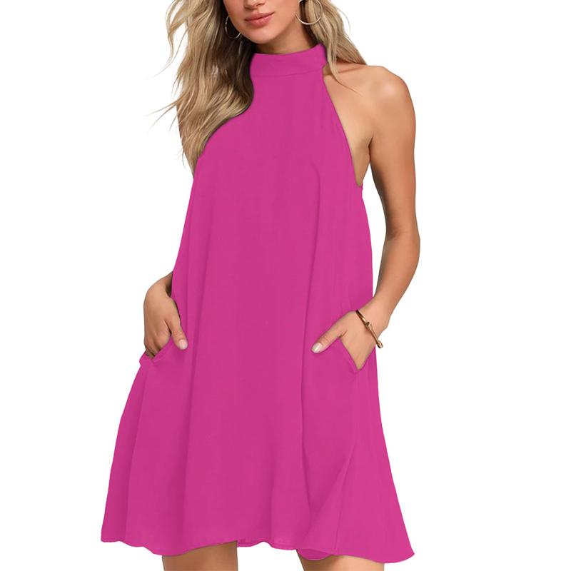 Features: Summer dresses with halter neckline design show off your neckline perfectly. Sleeveless, off shoulder, back keyhole with buttons, two pockets, A line dress, casual style,Flowy swing dress. Classic sundresses for women will never goes out of style.