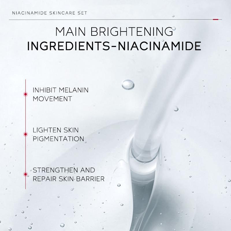 【Focused Hydration】: Featuring a potent niacinamide formula, the products in this set are designed to deeply hydrate and rejuvenate skin for a visibly refreshed appearance.