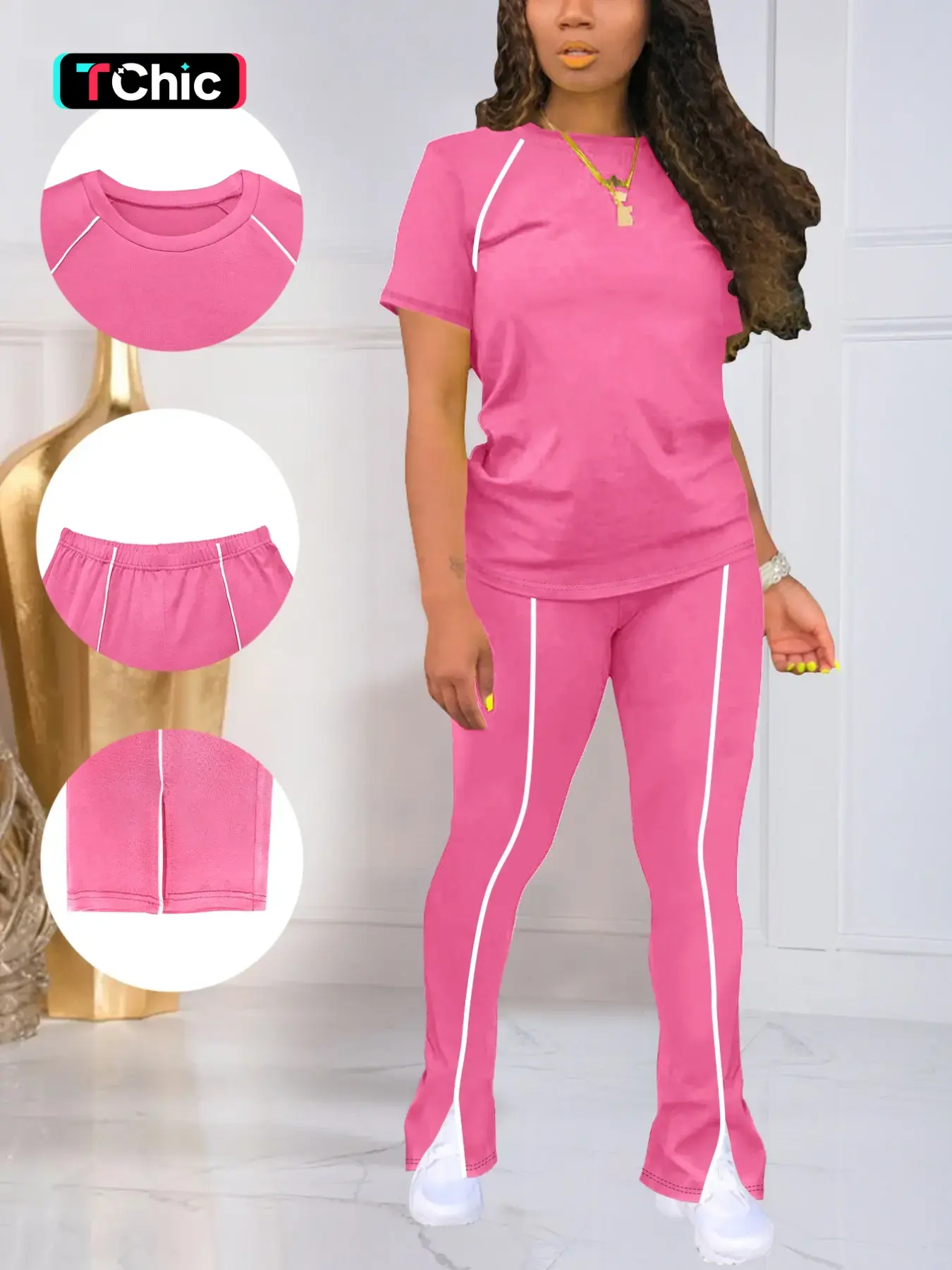 Summer Fashion New Round Neck Short Sleeve Top & pants set #loungewear #outfitinspo #casualoutfits #tiktokshop #fashion
