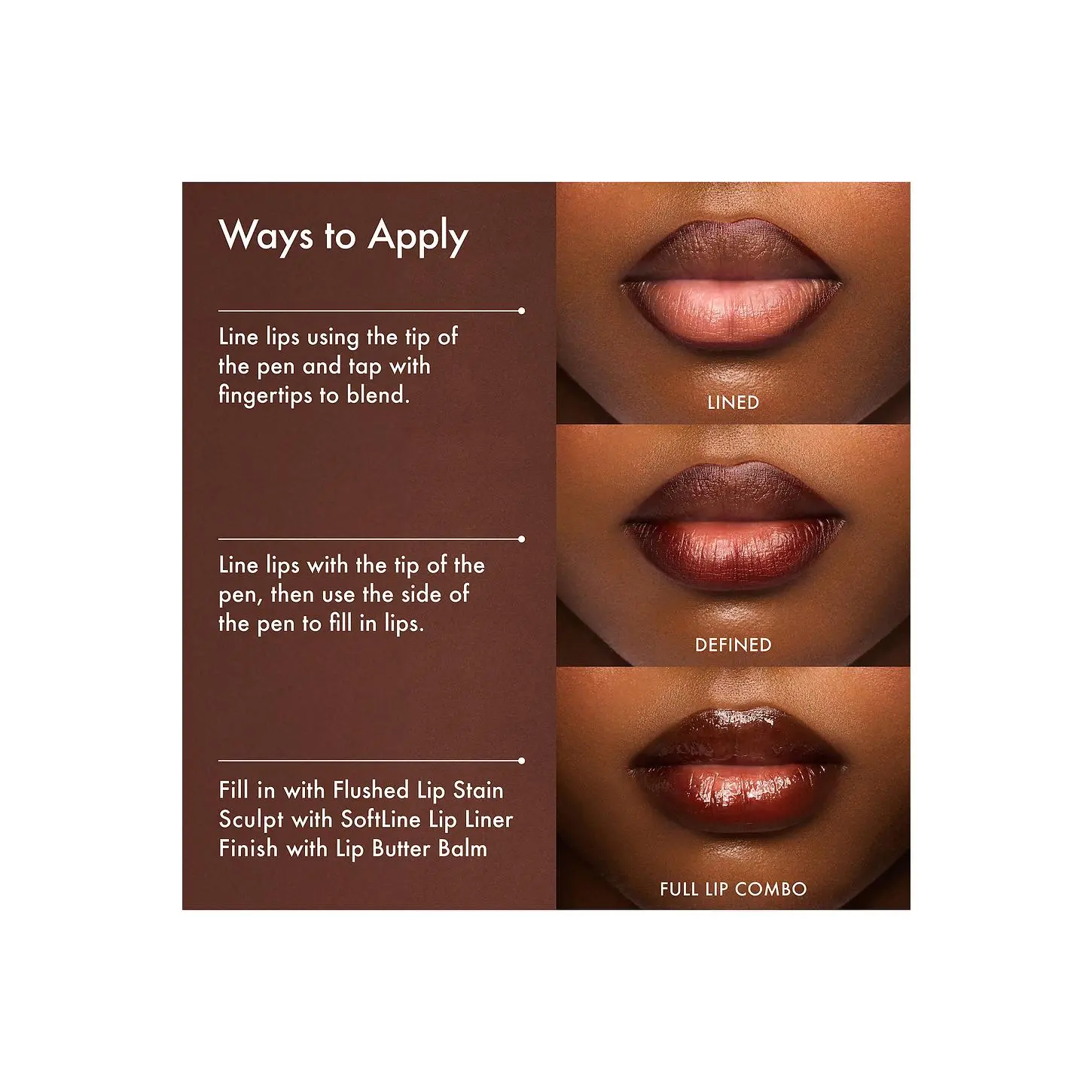 ·Follow with your favorite lip liner for a defined look.