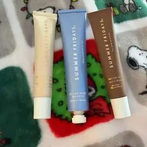 ·A holiday trio featuring Summer Fridays' Mini Jet Lag Mask® and two limited-edition flavors of Lip Butter Balm - Hot Cocoa and Toasted Marshmallow