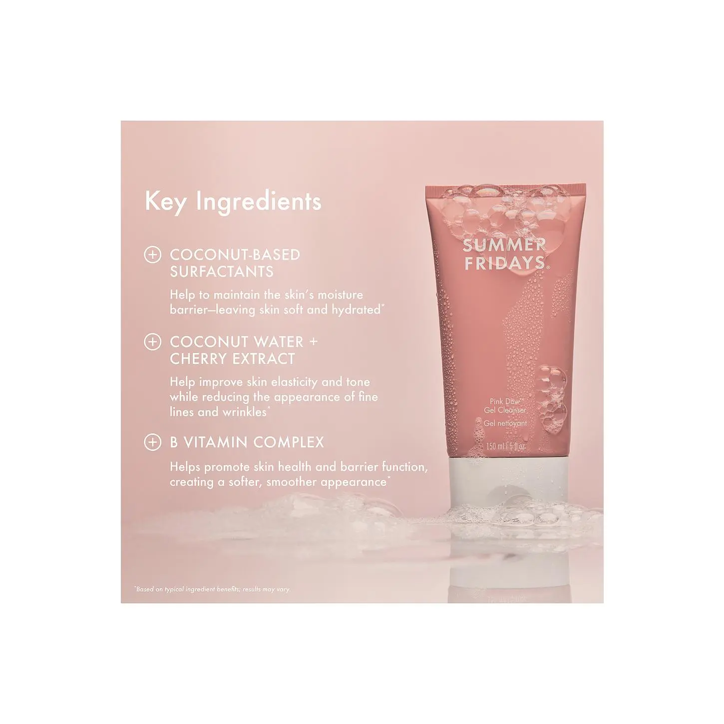 ·Coconut Water + Cherry Extract are hydrating and antioxidant-rich, this refreshing duo supports skin's natural glow and leaves it feeling clean, soft and replenished
