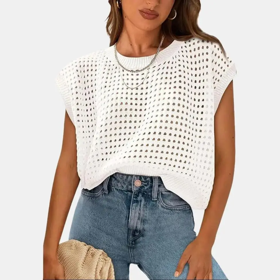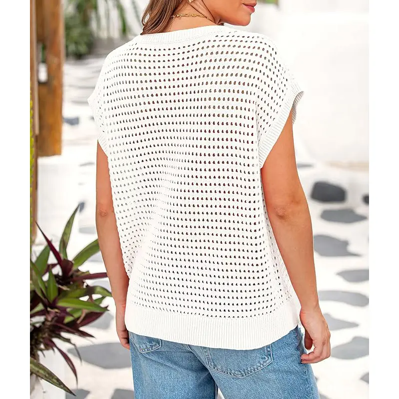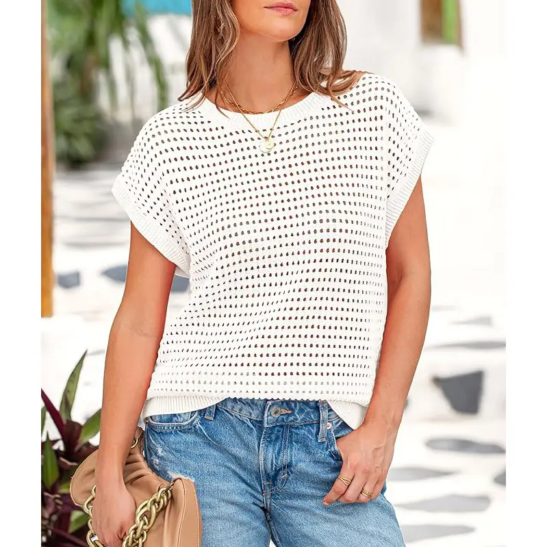 ·Features cap sleeves, hollow-out design, crew neck, and loose fit, offering a bohemian vibe for a chic and comfortable look.