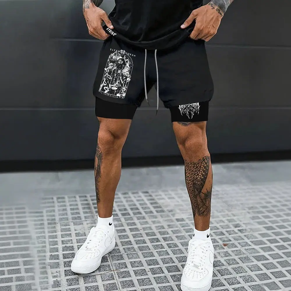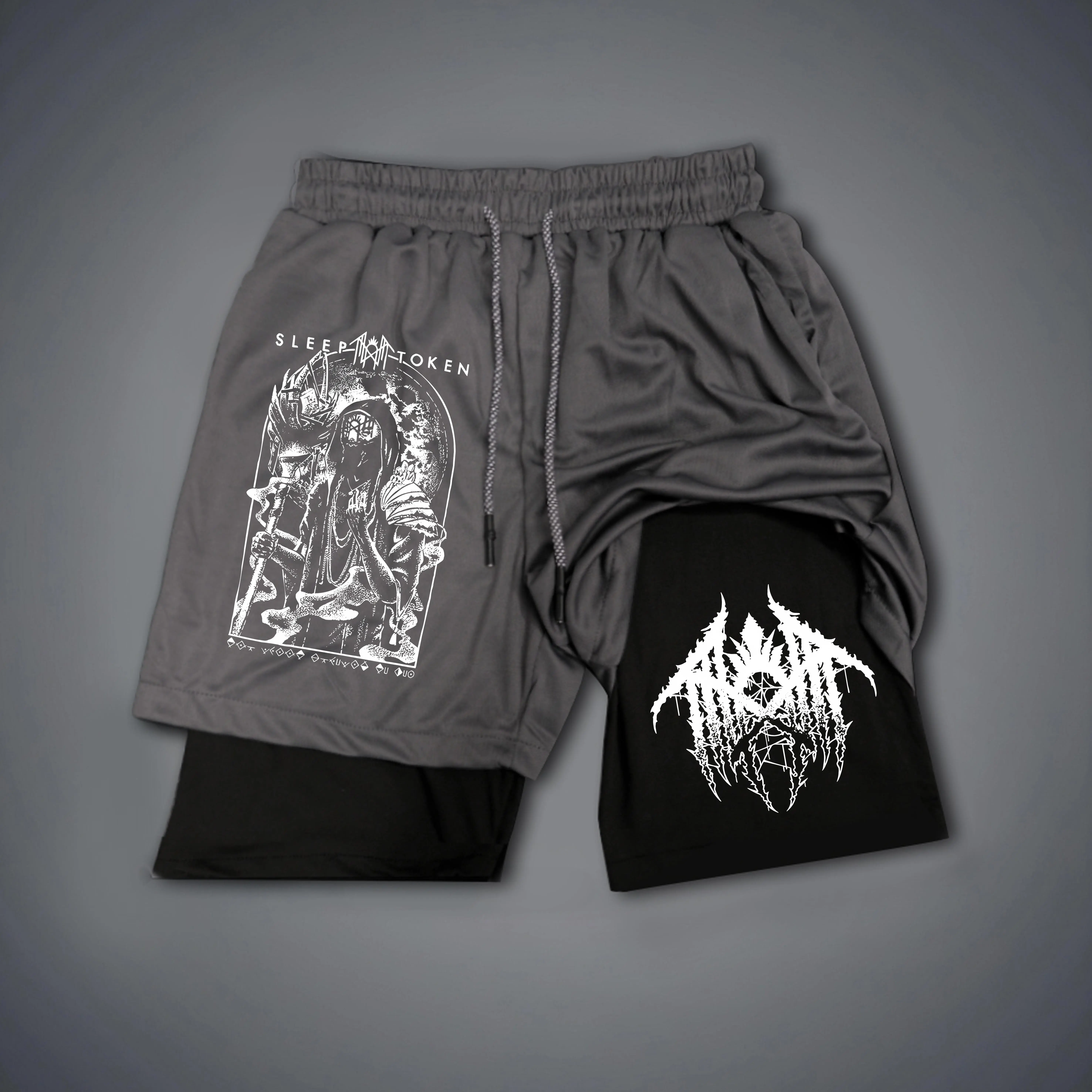 5. Sleep Token Merch Summer Unisex Black Graphic Shorts Double-Layer Sports Shorts with Elastic Waistband & Drawcord for Comfortable Fit