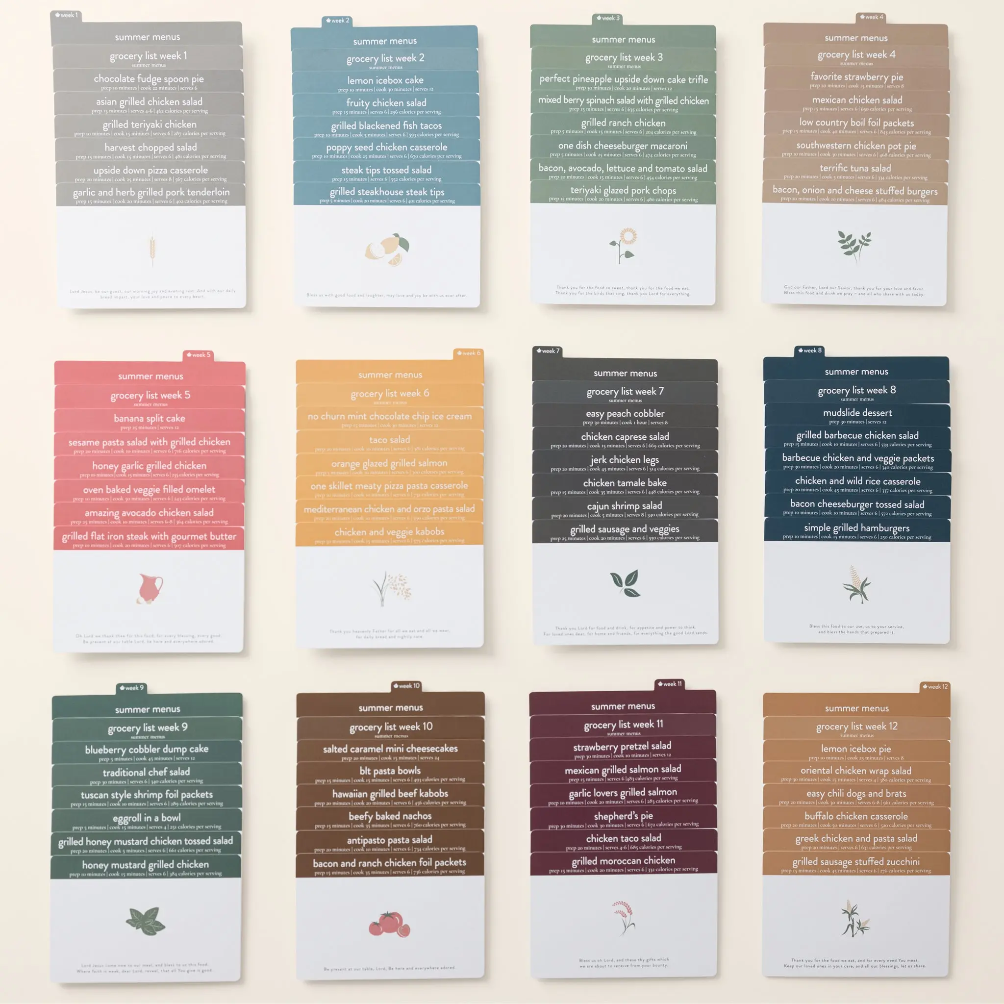 The plan includes a grocery list for each weekly menu, making meal planning a breeze. Perfect for busy summers! 📅