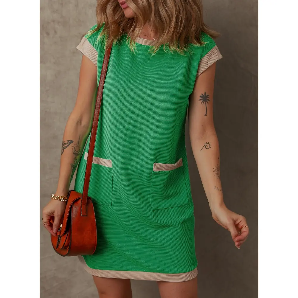 Design: The casual summer dresses for women 2026 are featured with a chic color block pattern, which adds a modern twist to your wardrobe. The bold contrasts make it stand out among other casual dresses. Designed with practicality in mind, this dress includes two spacious pockets. These pockets add both functionality and a trendy look.