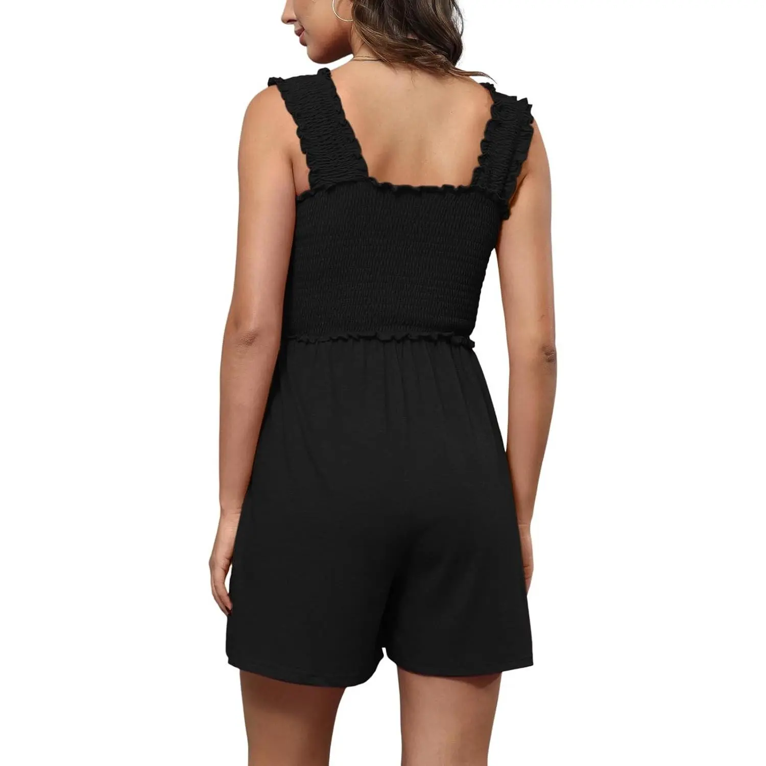 • Features a sexy square neck, spaghetti ruffle straps, and two pockets. The smocked, backless, and sleeveless design creates fashionable and cute shapes. You'll stand out in this versatile piece, making you the most beautiful one.