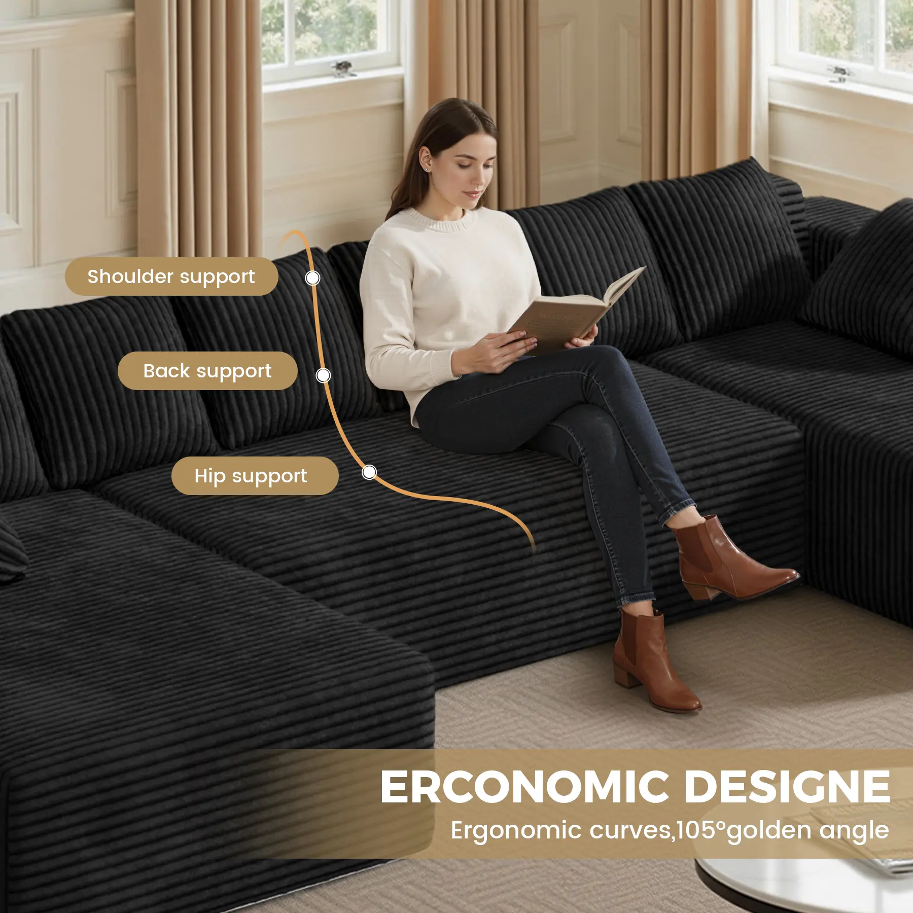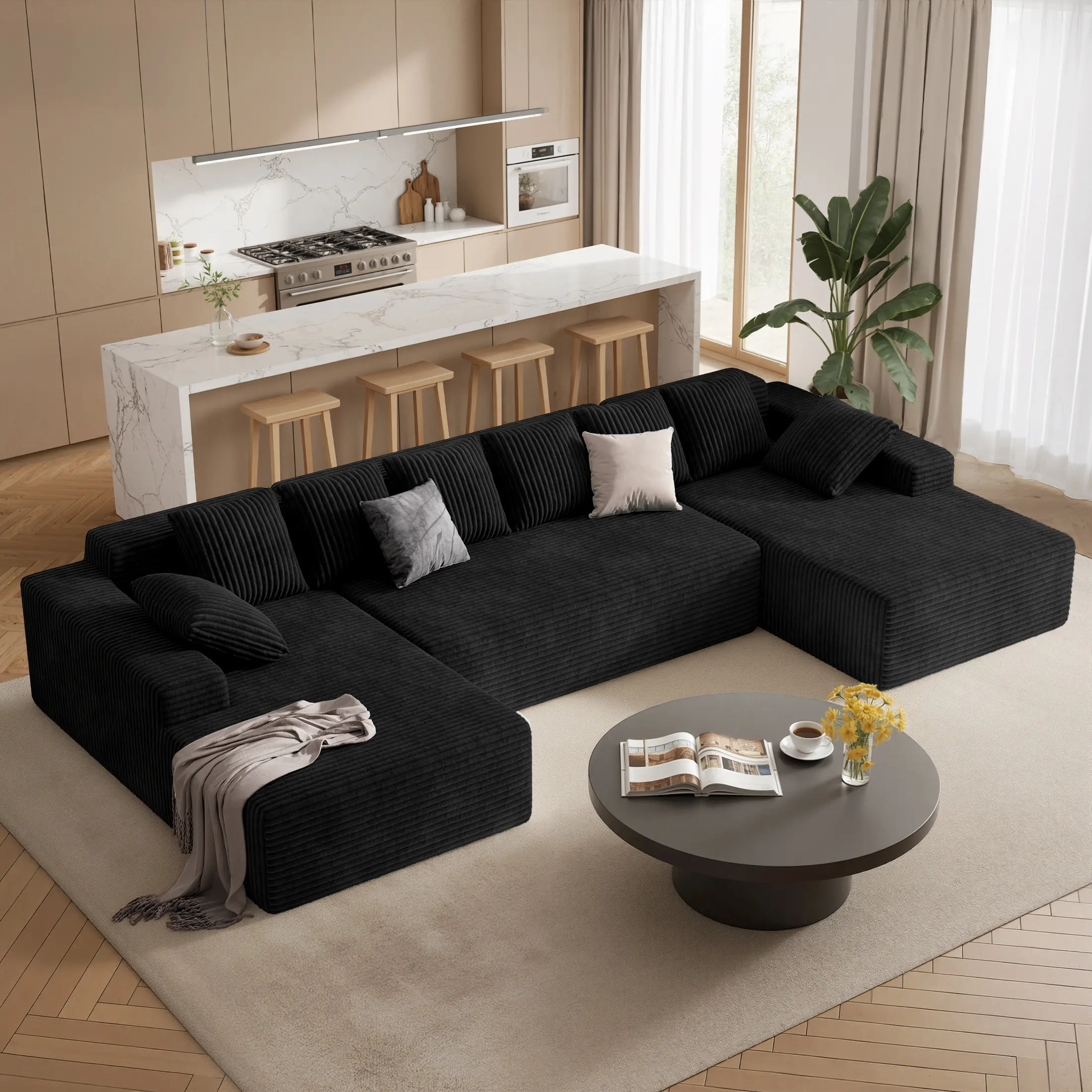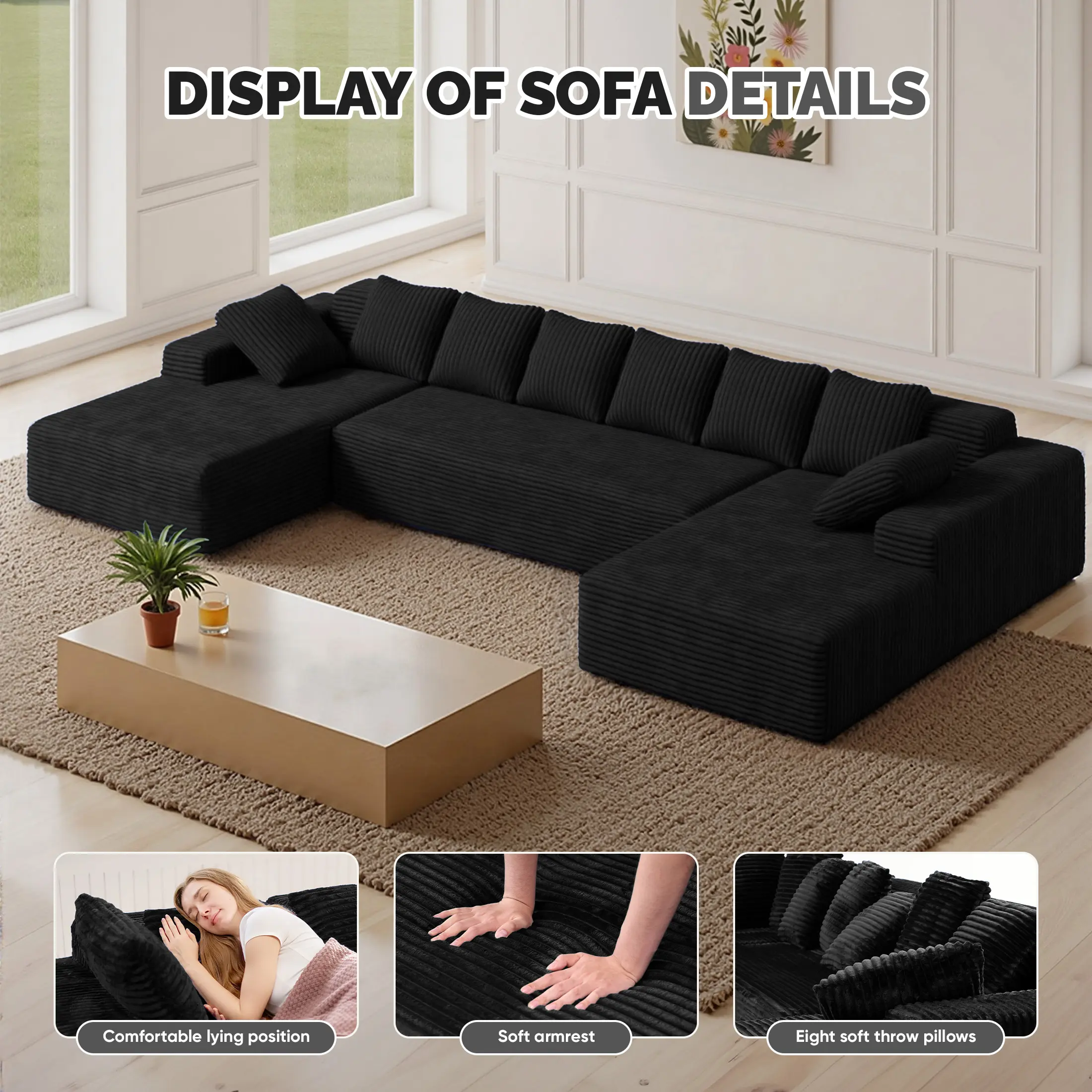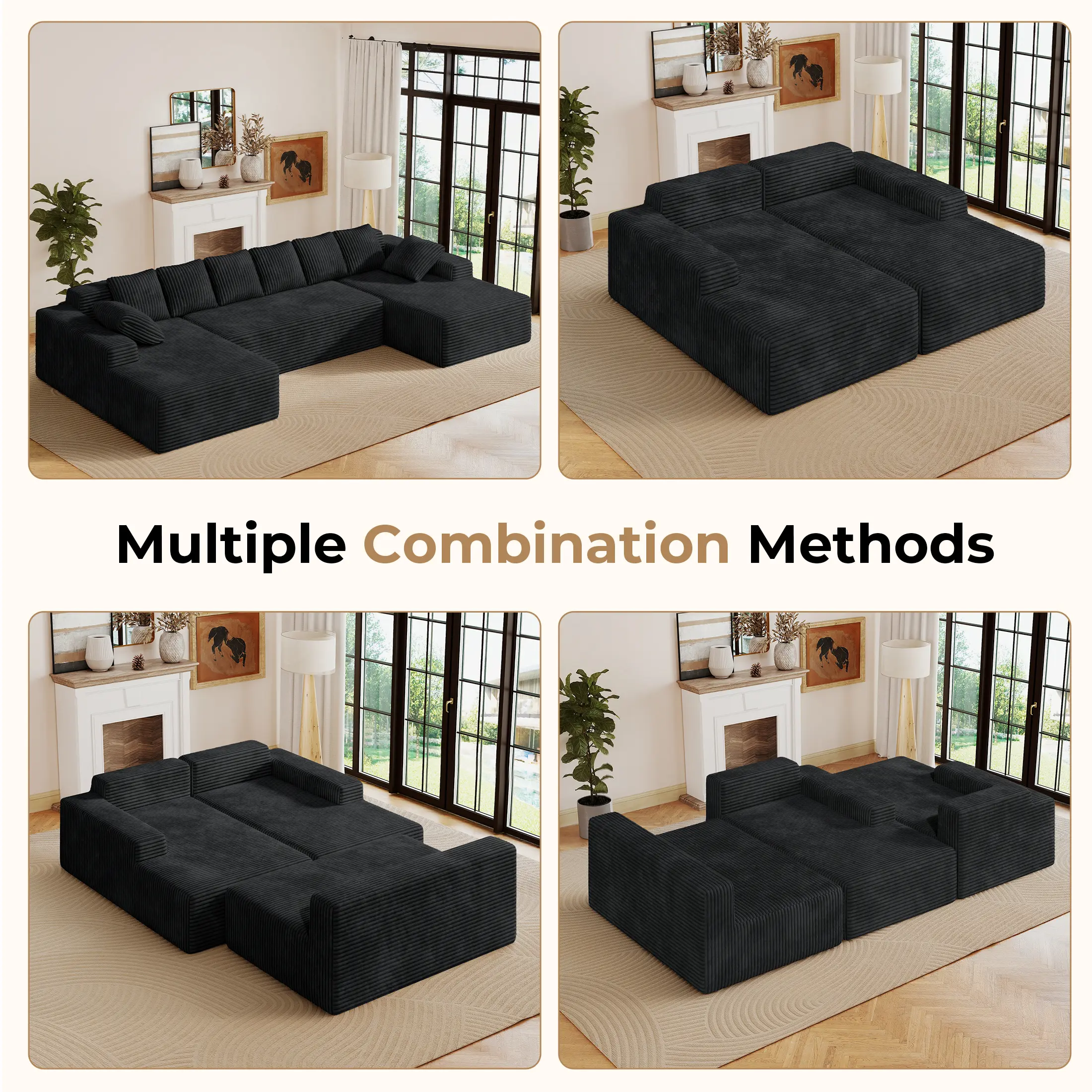 ·131'' Large Couches for Living Room: Our Luxury modular U-shaped corduroy sofa. Featuring a Luxury design, clean lines, and high-quality corduroy fabric, this corduroy sectional couch to suit your space and style, easily adaptable to your changing needs