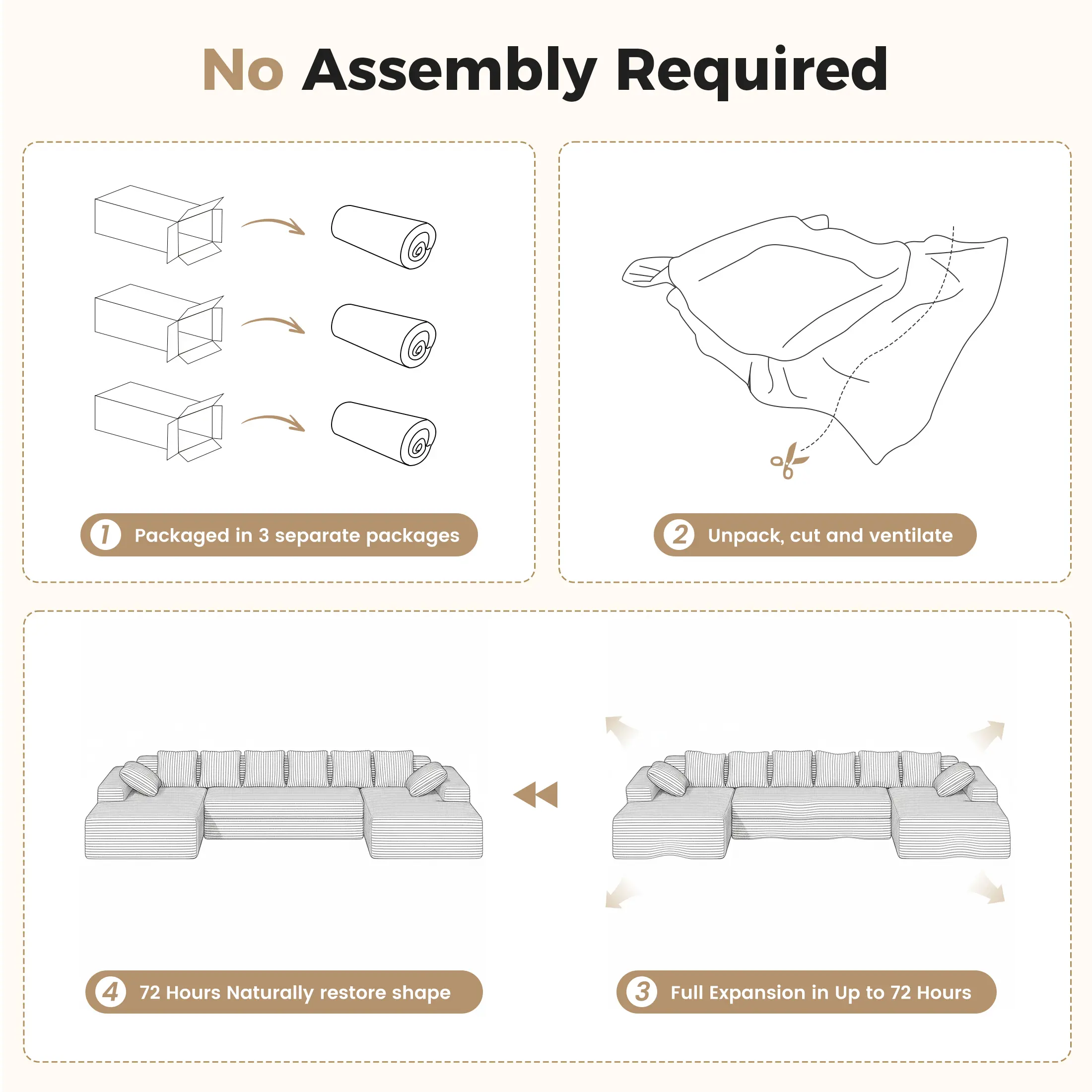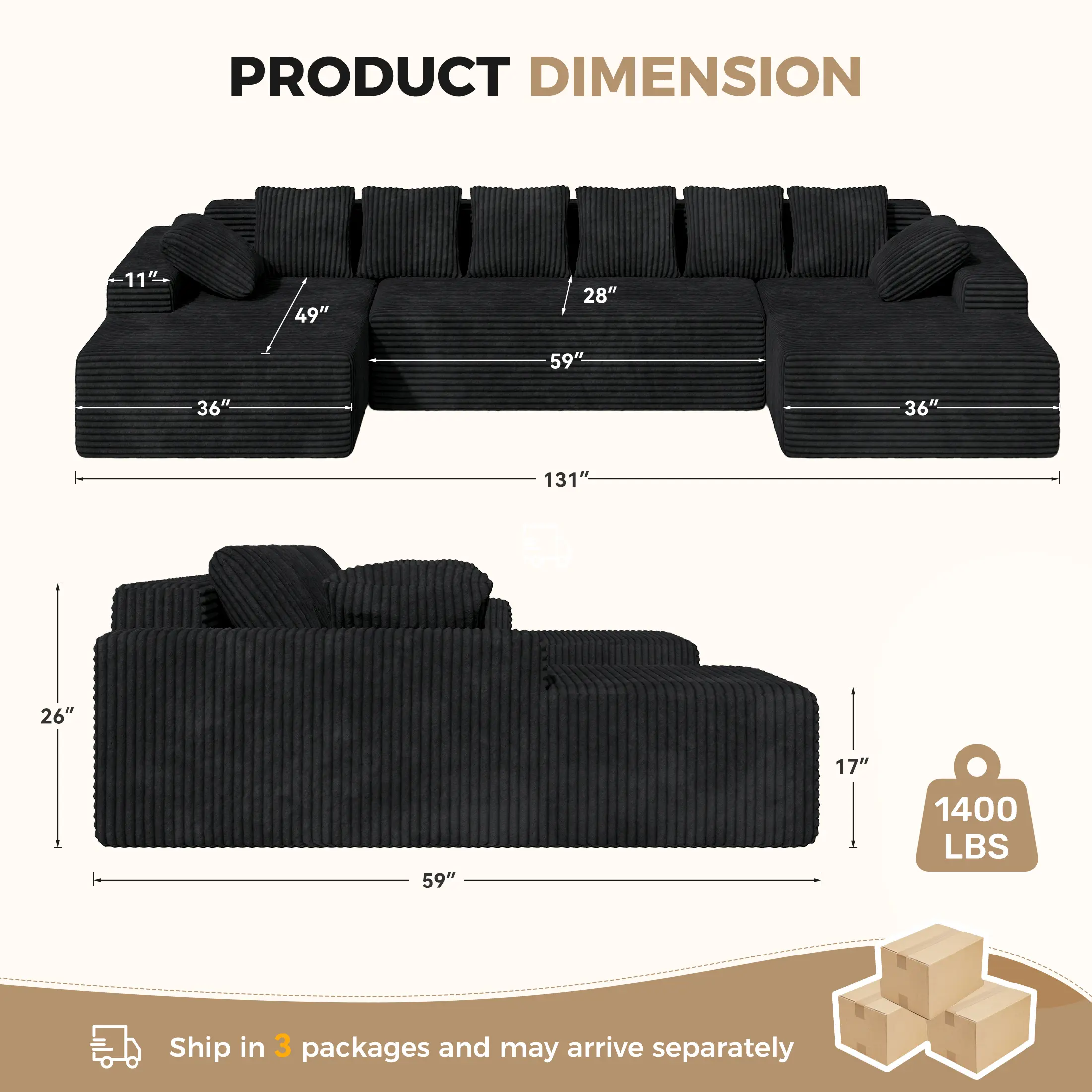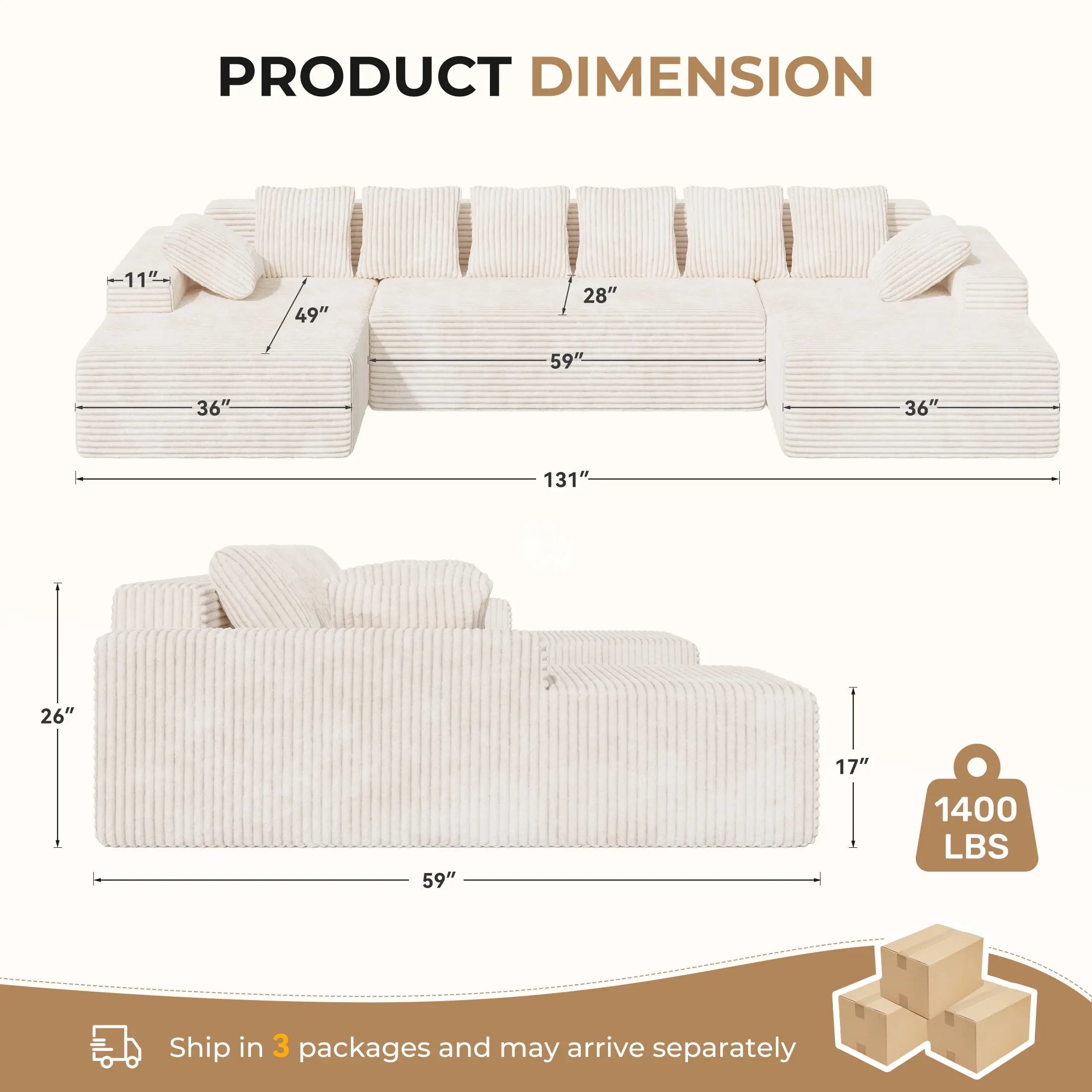 · After arrival, the buyer can install it themselves and turn it into a 131 '' Large Couches! Before each shipment, we will contact everyone at the customer service to promptly inform them of the information of the three logistics packages!